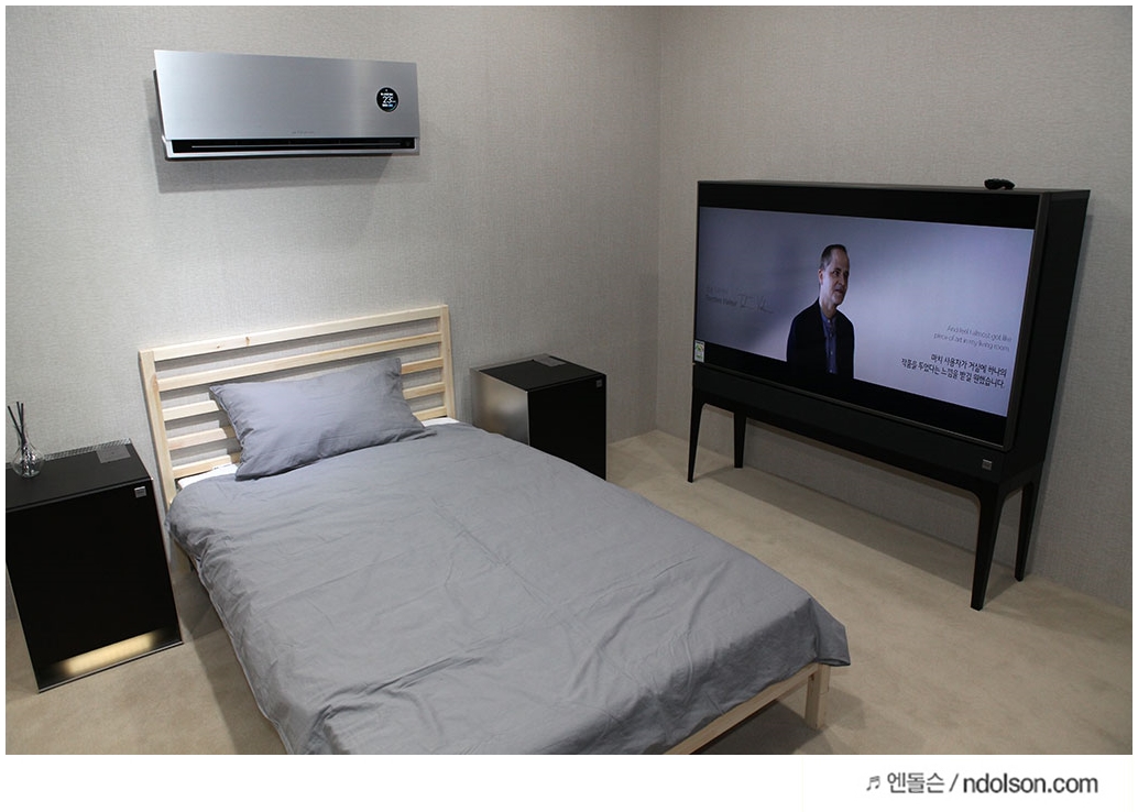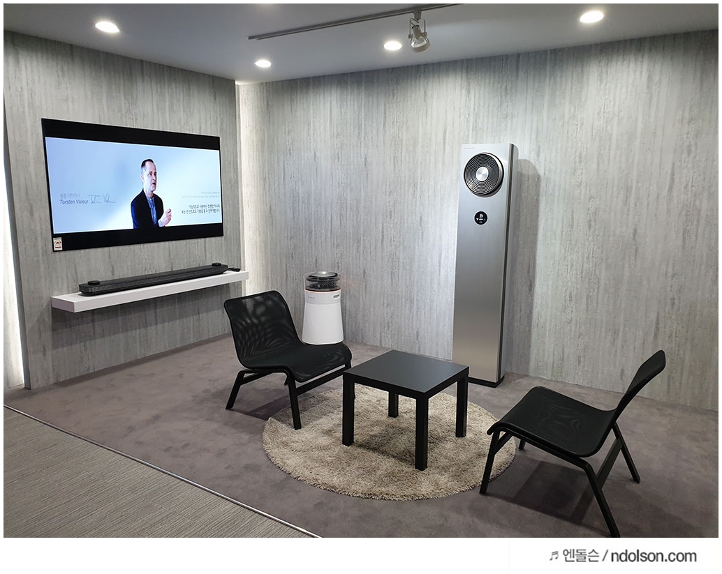 이번에 선본인 LG 시그니처는 에어컨입니다. 벽걸이 에어컨부터 스탠드 에어컨까지 진정한 럭셔리함의 끝은 어디인지 보여주었습니다. 또 만약 LG 시그니처 에어컨을 구매했다면, 집안 분위기는 어떤지 볼 수 있게 꾸며진 룸이 있어 마음껏 확인할 수 있었습니다.