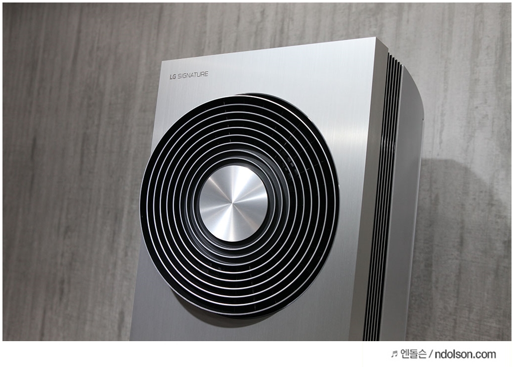 에어 서클은 켜고 끌 때, LED 불빛이 동그랗게 들어오는 신비로움을 보여주며, 에어컨을 미사용할 때 먼지가 들어가지 않게 덮게가 닫히는 구조로 되어 있습니다. 또 미관상 LG 시그니처 에어컨을 꺼두어도 메탈 느낌이 마치 작품 같습니다.