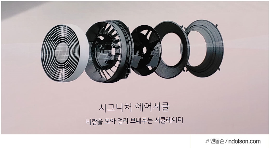 시그니처 에어 서클은 서큘레이터처럼 바람을 멀리까지 보낼 수 있게 되어 있습니다.