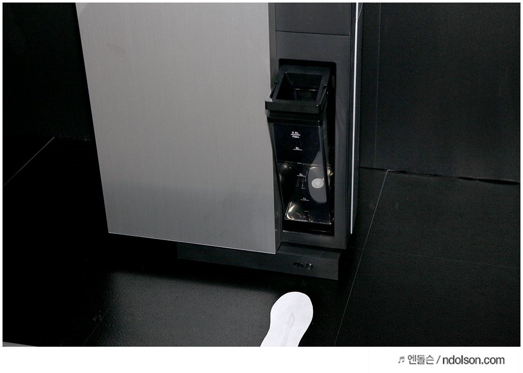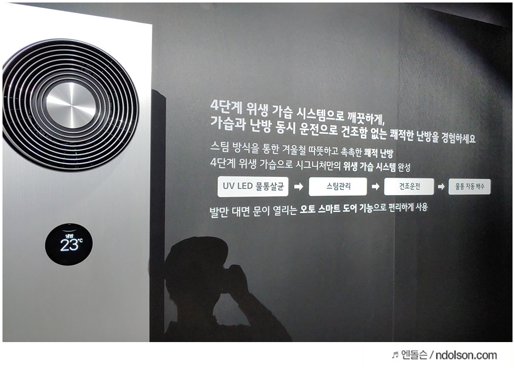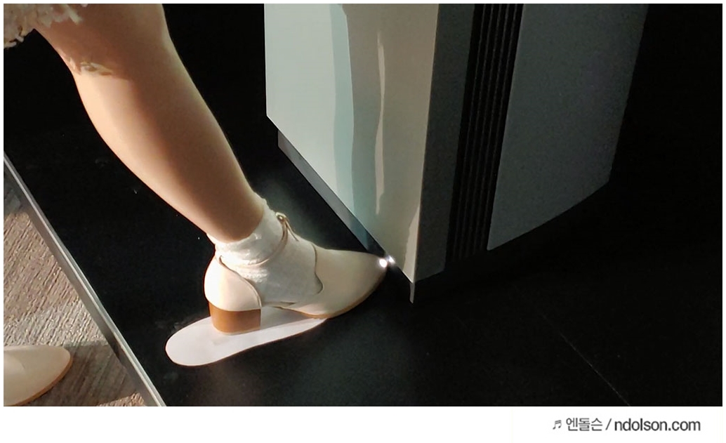 프리미엄 기능이 많아 모든 것이 자동이었습니다. LG 시그니처 에어컨 앞에서 발을 가져다 되면, 물통 서랍이 자동으로 열려 사용자가 가습기 물통을 손쉽게 갈 수 있게 하였습니다.