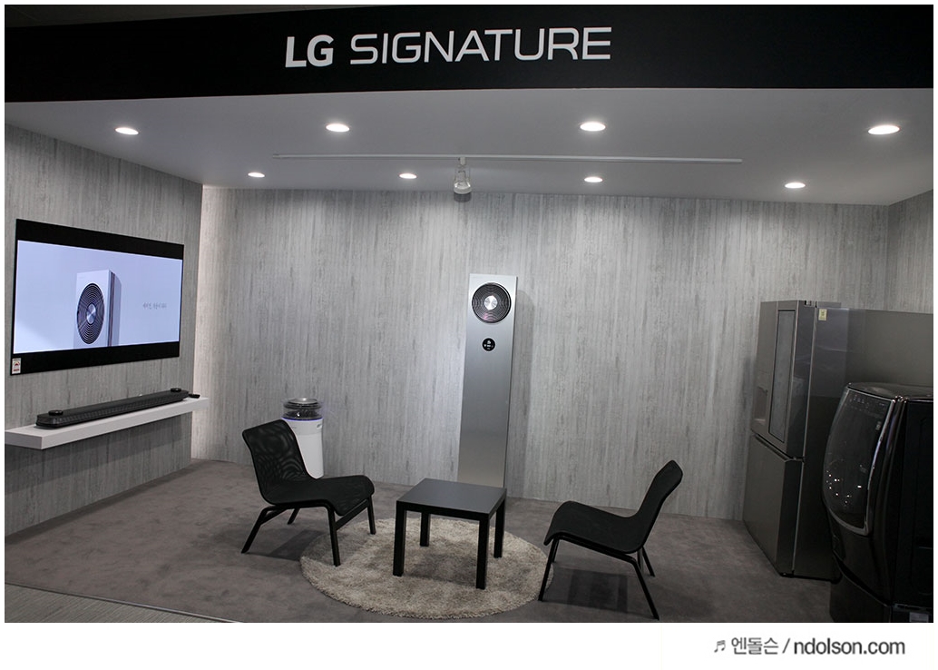 이번에 선본인 LG 시그니처는 에어컨입니다. 벽걸이 에어컨부터 스탠드 에어컨까지 진정한 럭셔리함의 끝은 어디인지 보여주었습니다. 또 만약 LG 시그니처 에어컨을 구매했다면, 집안 분위기는 어떤지 볼 수 있게 꾸며진 룸이 있어 마음껏 확인할 수 있었습니다.