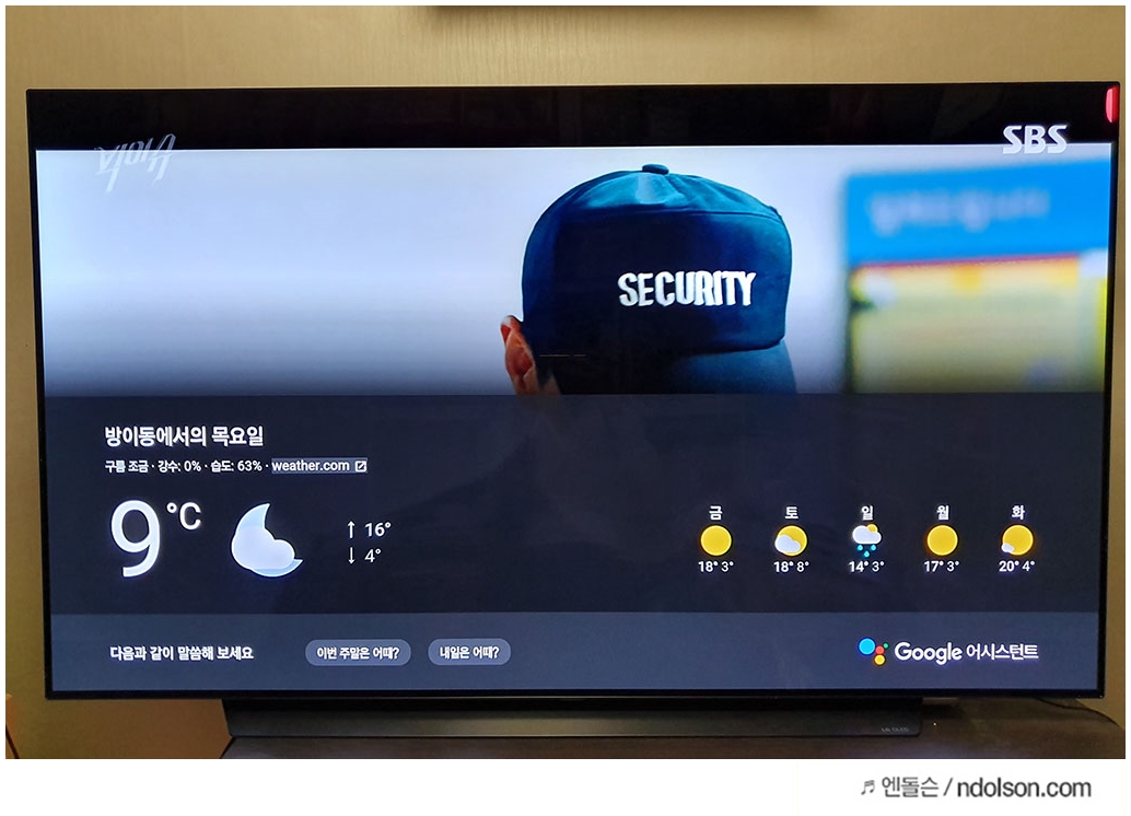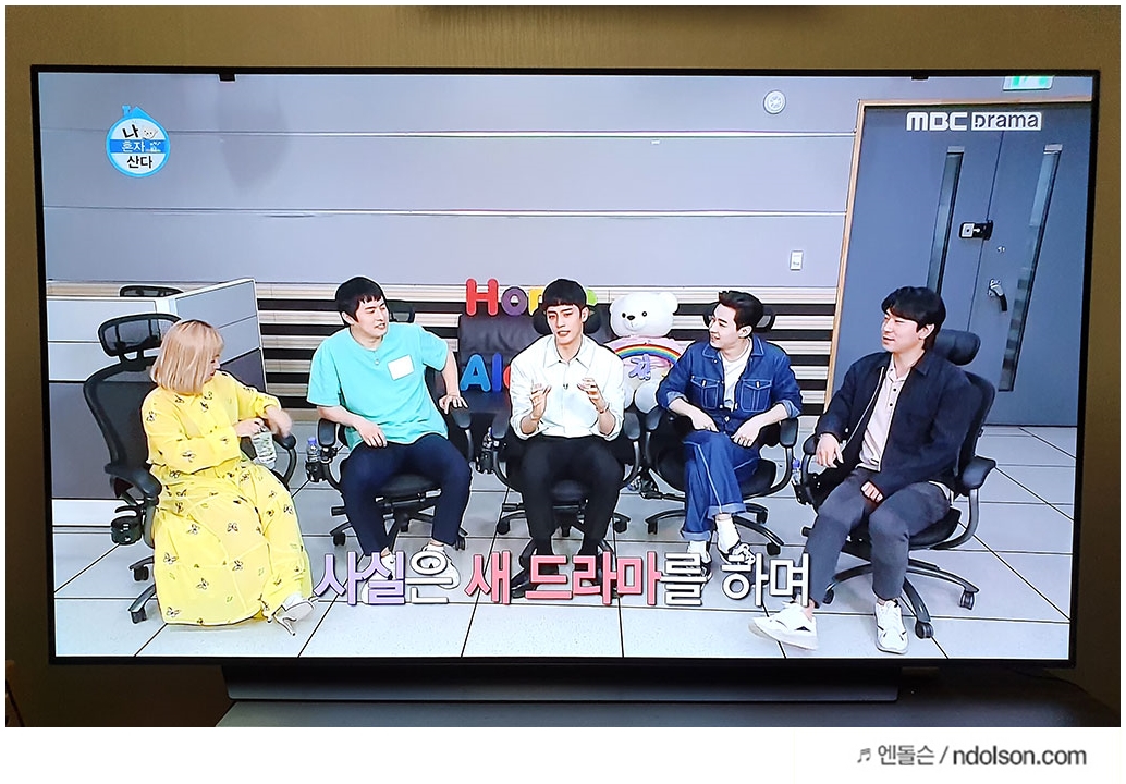 여기에 2채널 음원을 별도 추가 스피커가 없이 버츄얼 5.1 입체 사운드로 바꿔주는 인공지능 사운드 기술도 탑재되어 있습니다. 그래서 영화를 볼 때 특히 생생한 느낌이 좋았습니다. 개인적으로 조금 아쉬운 점은 드라마를 볼 때는 대사 부분이 주변소리에 조금 묻히는 거 같아 조금 더 큰 볼륨이 유리했습니다.
