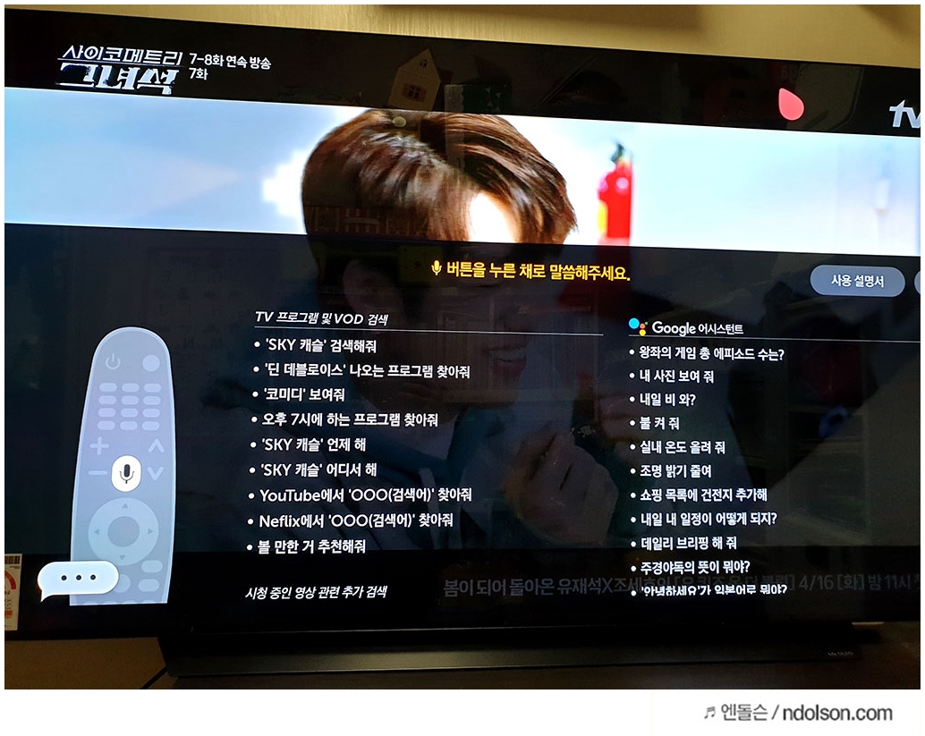 "영화모드로~" 그냥 말로만 해도 알아서 TV 설정을 찾아 설정해 줍니다. 음성과 영상 모두 설정되니 편합니다. 그런데 더 편한 방법이 있습니다.