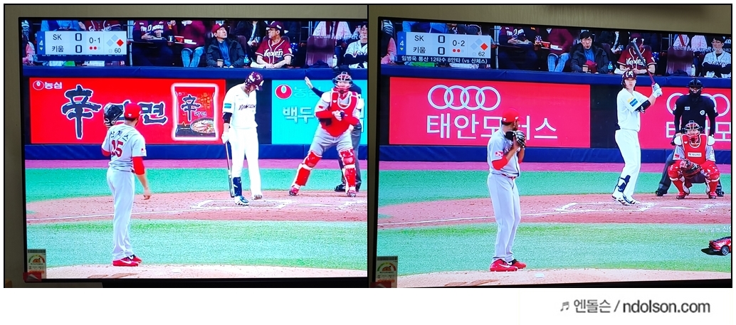 왼쪽은 인공지능 화질을 ON한 것이고 오른쪽은 OFF한 것입니다.