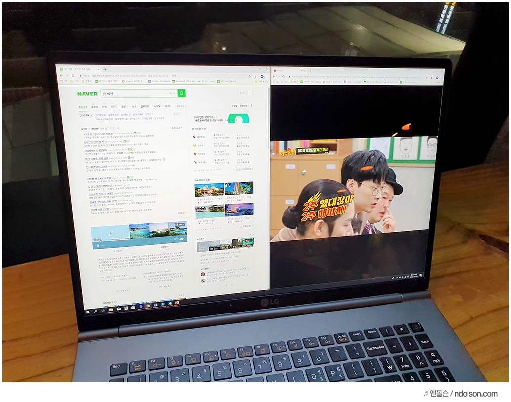윈도우 화면의 창을 4개로 분화하여 보았습니다. 아무래도 14인치로는 멀티태스킹 작업을 하기가 어렵지만 LG 그램 17은 멀티태스킹에 적합해 보이는군요.