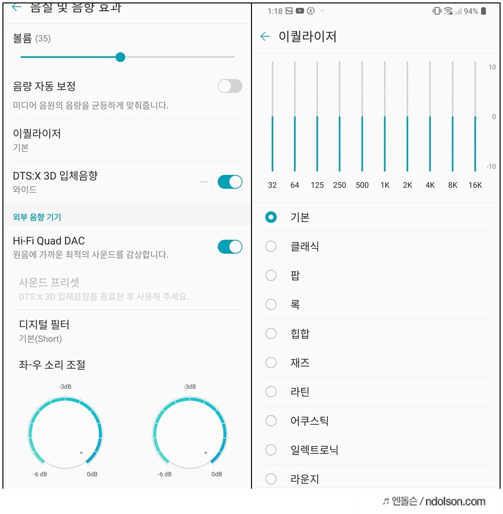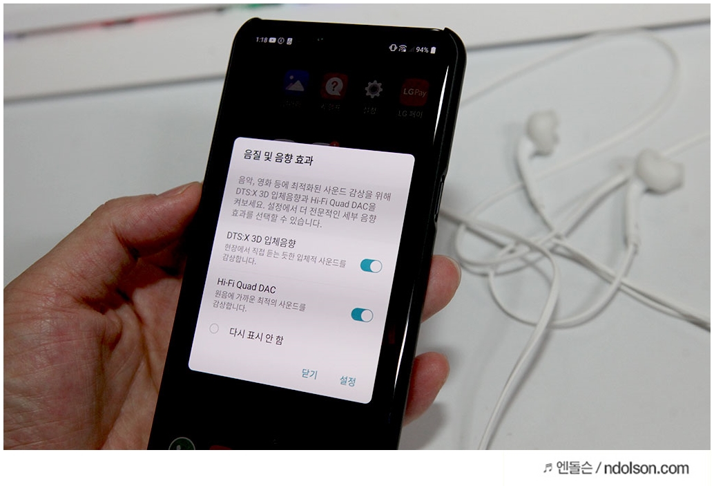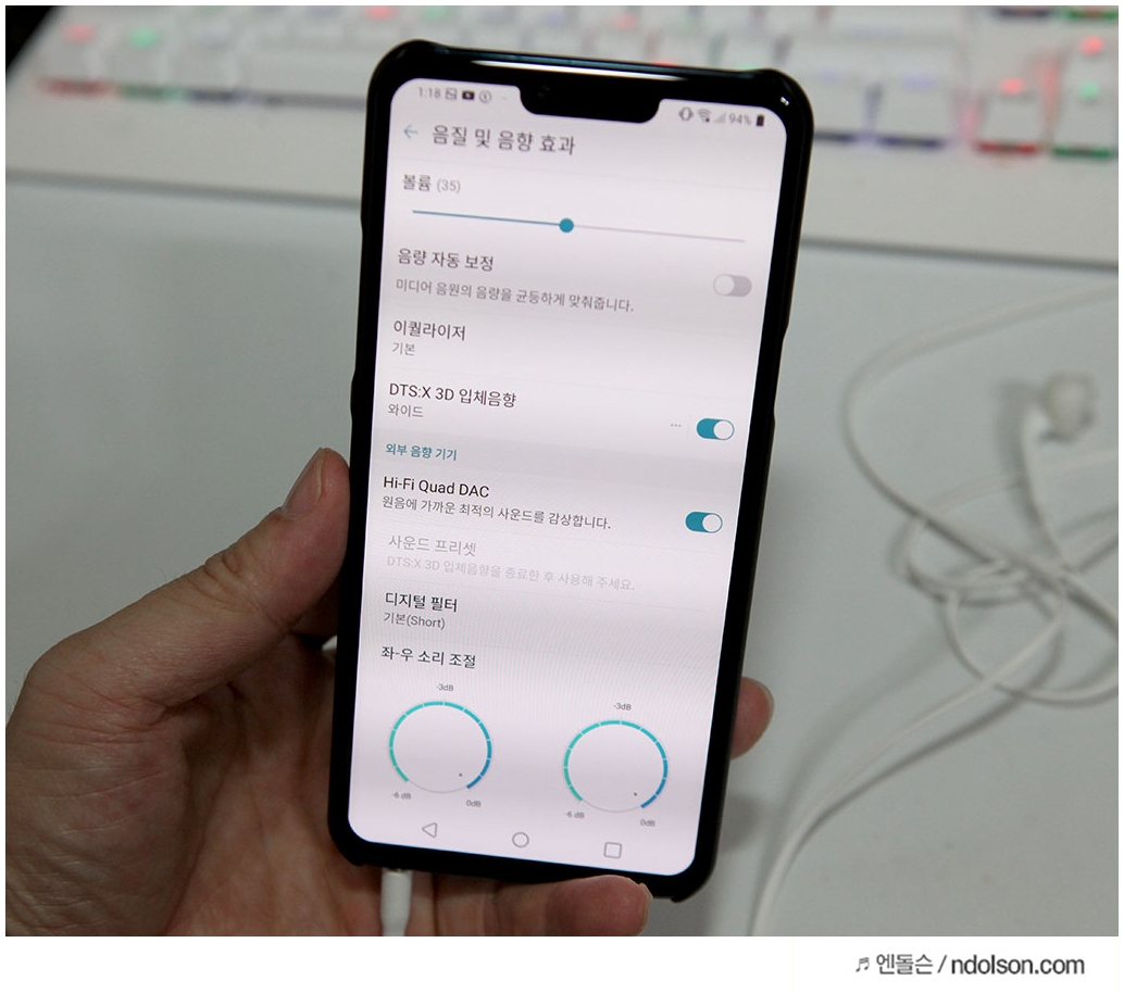 좌우 밸런스 조절도 가능합니다. DAC 탑재로 보다 선명한 음질을 감상할 수 있습니다. LG스마트폰만 고집하시는 분이 있을 정도로 음질 특화는 대단합니다.