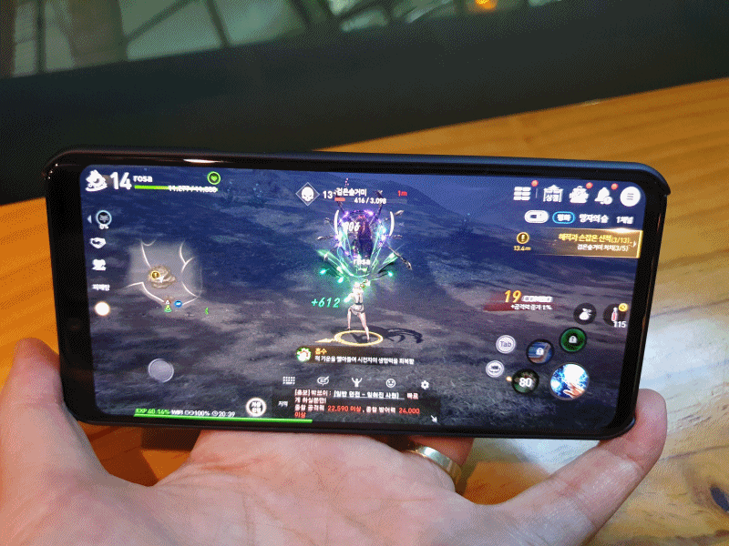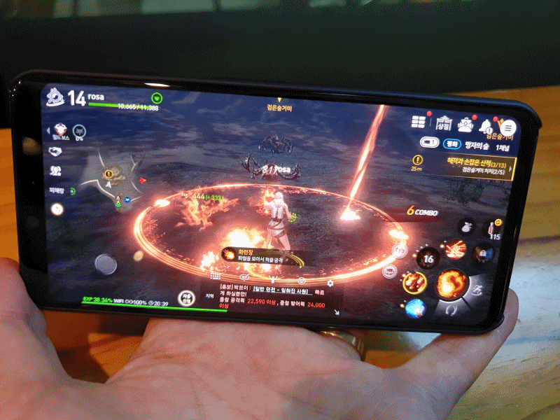 풀 3D 게임인 블레이드 & 소울 레볼루션의 경우 게임 옵션을 높여도 게임이 잘 진행되었습니다. 스냅드래곤 855 AP로 게임을 할 때 딱히 느리지는 않습니다.