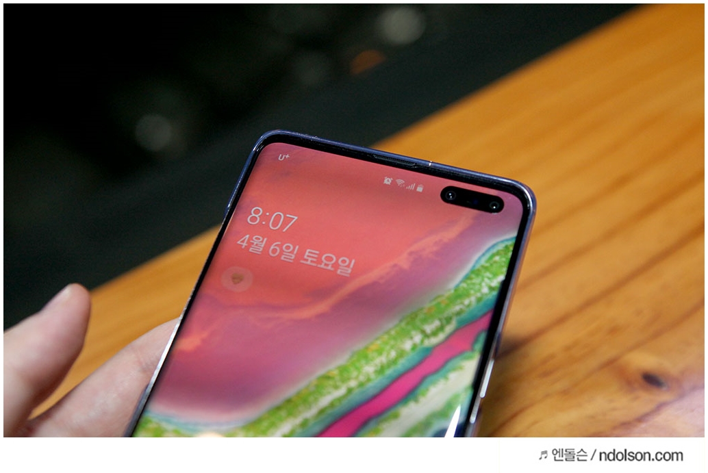 6.7인치로 사이즈가 갤럭시 S10 모델 중에서는 가장 큽니다. 커서 불편할 거라는 생각도 있었지만, 큰 스마트폰을 선호하는 입장에서 노트 9를 써보고 들어 보니 가볍고 전면 풀 스크린이 마음에 듭니다.