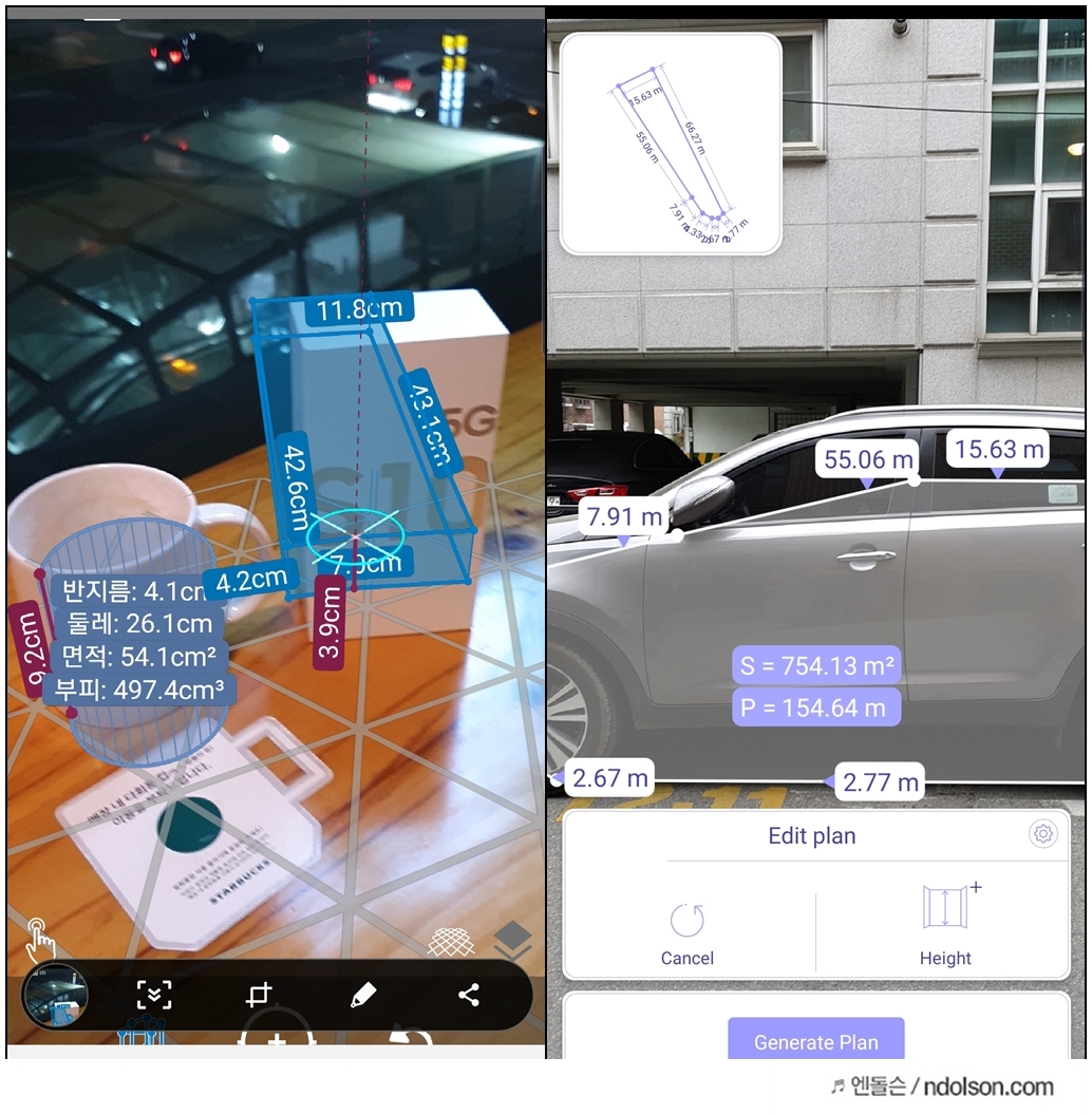 이렇게 공간을 인식해서 가상의 줄자로 3D 입체적인 공간을 인식할 수 있는 데, 갤럭시 S10 5G 공식 홈페이지를 가보면, 서드파티로만 앱이 제공됩니다. 하지만 라이브 포커스 동영상 같이 동영상에서도 자연스러운 아웃포커스를 구현하였다는 것은 좋습니다.