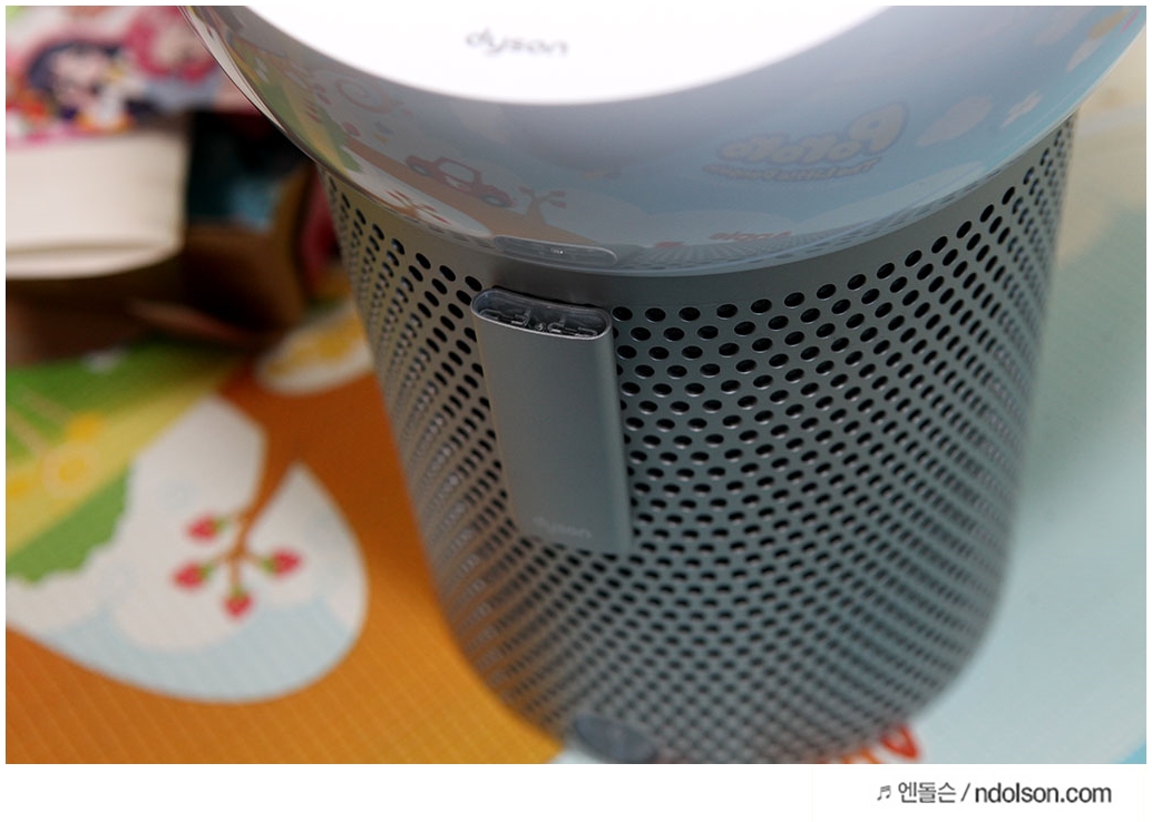 다이슨 퓨어쿨 미의 옆면에 보면 버튼이 있어서 필터를 교환할 수 있게 되어 있습니다.