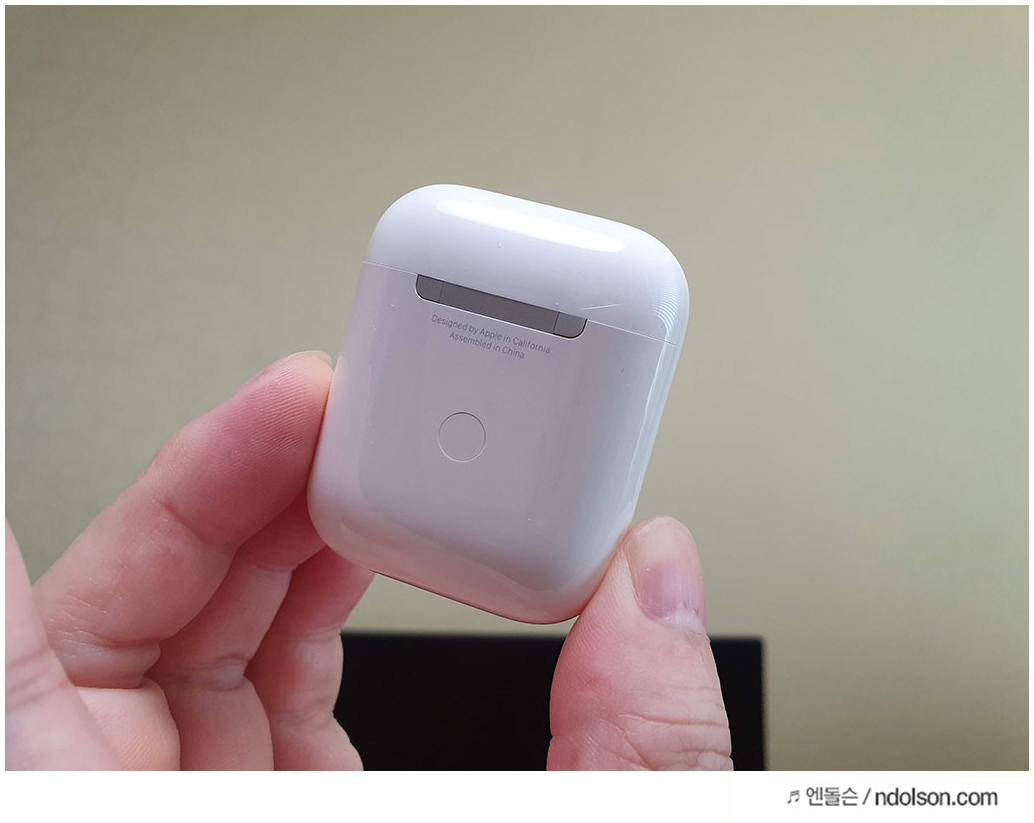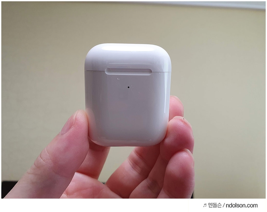 이번 에어팟2는 크게 달라진 것을 느끼지 못합니다. 하지만, LED 충전상태가 위로 올라와서 무선충전을 할때 보기 편하게 바뀐 디자인 변화를 볼 수 있습니다.
