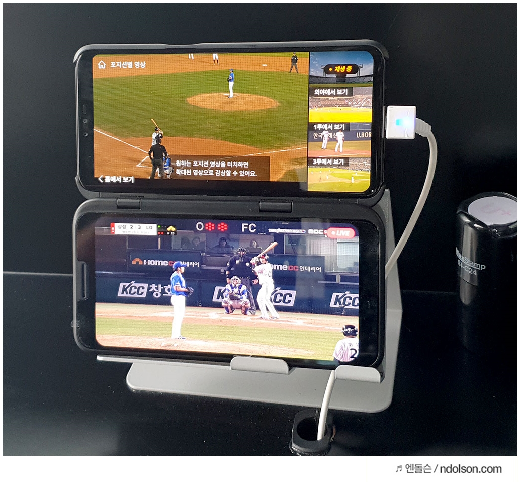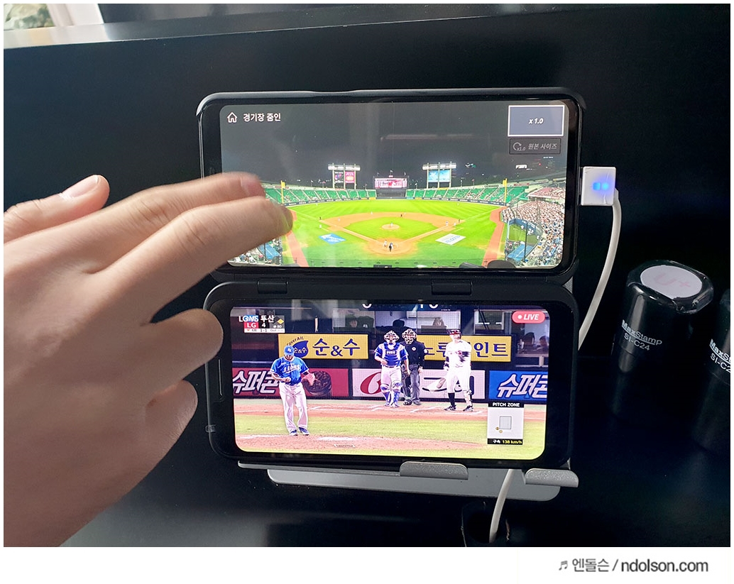 주변에 잠실 야구장이 있고, 야구를 좋아하는데요. 화면이 2개라서 위에서는 외야에서 보기, 3루에서 보기, 1루에서 보기 등을 선택하여 원하는 걸 보고 아래에서는 생방송을 볼 수 있습니다. 동시에 여러 장면으로 야구를 볼 수 있어서 마음에 듭니다.