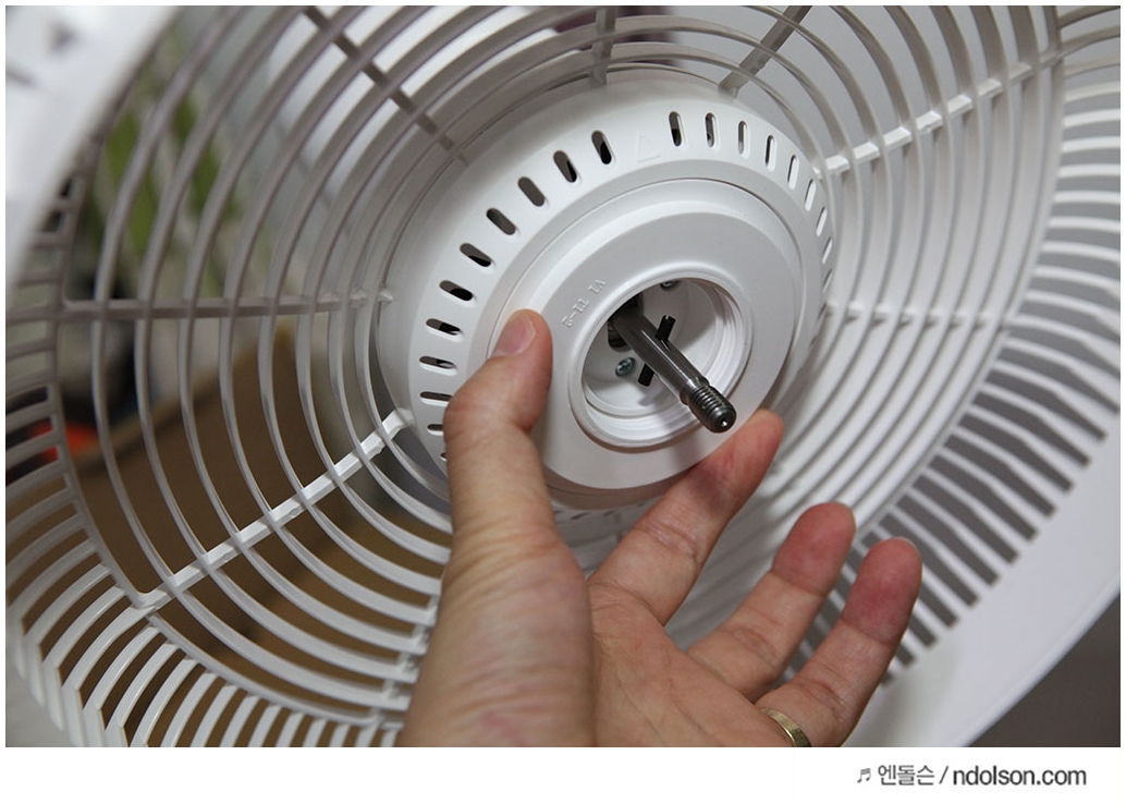 샤오미 선풍기는 돌려서 고정하는 방식으로 선풍기 날개를 끼우기 편하게 되어 있었습니다.