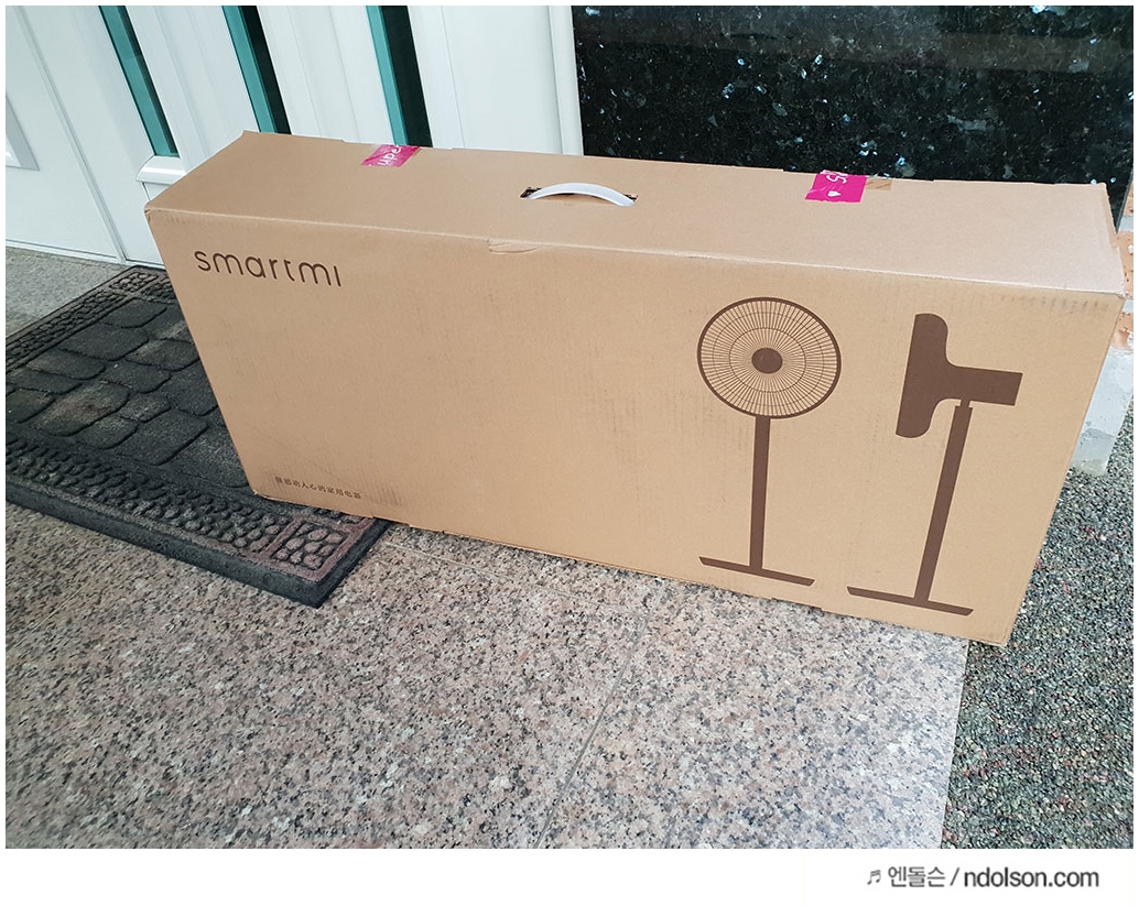 샤오미선풍기 배달왔습니다. 주문하니 택배로 배송되어 왔는데, 전면에 그려진 이미지를 보고 샤오미 선풍기임을 쉽게 알 수 있었습니다. 1세대를 구매하고 본 거라 큰 차이는 없었습니다.
