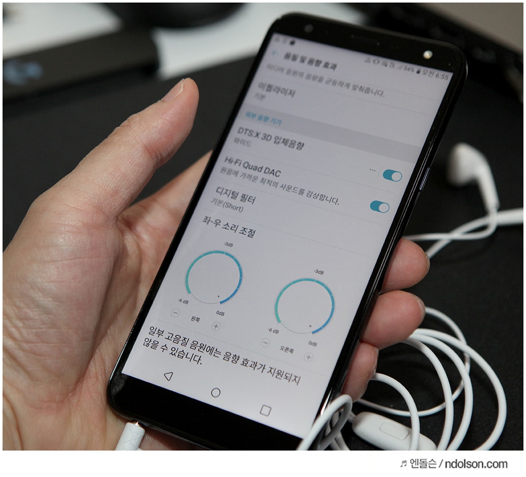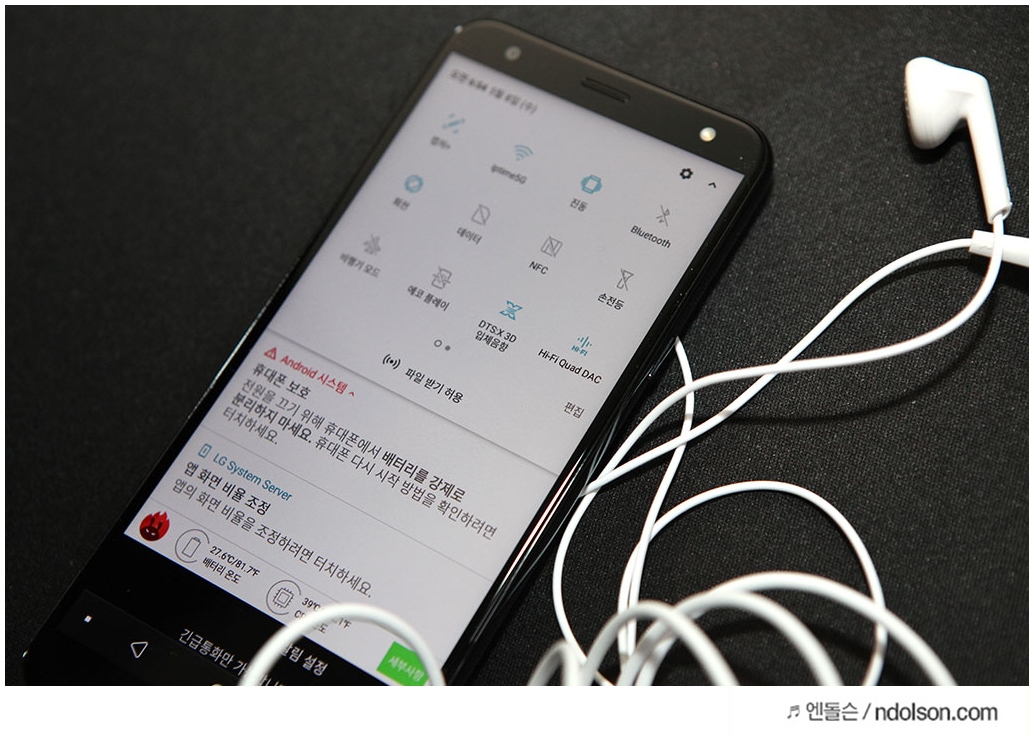 상단바를 내려 설정을 보니, DTS:3D 입체음향과 Hi-Fi Quad DAC의 사운드 기능을 볼 수 있었습니다.
