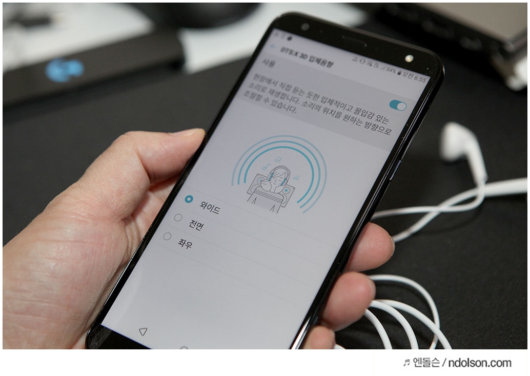 DTS:X 3D 기술은 일반 이어폰으로도 최대 7.1채널 고품격 음향을 만들어 마치 극장에서 서라운드로 음악을 감상하는 것 같은 생생함을 느낄 수 있게 하는 기술입니다. 유선 이어폰으로 즐길 수 있는 최고의 사치라는 생각이 듭니다. 와이드. 전면, 좌우에서 느낄 수 있게 입체음향을 선택할 수 있습니다.