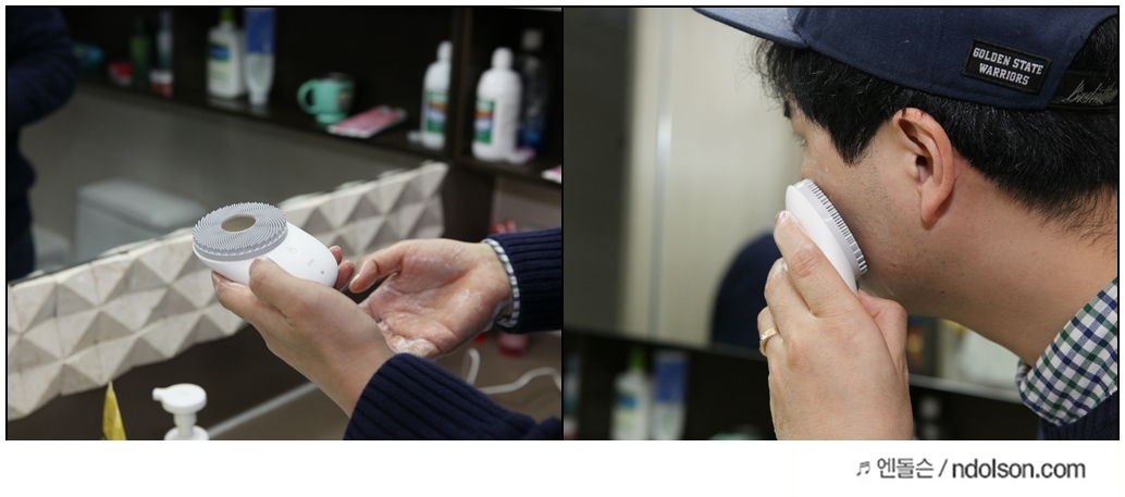 정말 매일매일 LG 프라엘 진동클렌저를 하고 있습니다. 처음 할 때 음성으로 안내가 나오면서 왼 볼, 오른 볼, 코, 턱, 이마 순으로 안내를 해주니깐 더욱더 케어 받는 느낌이었습니다.