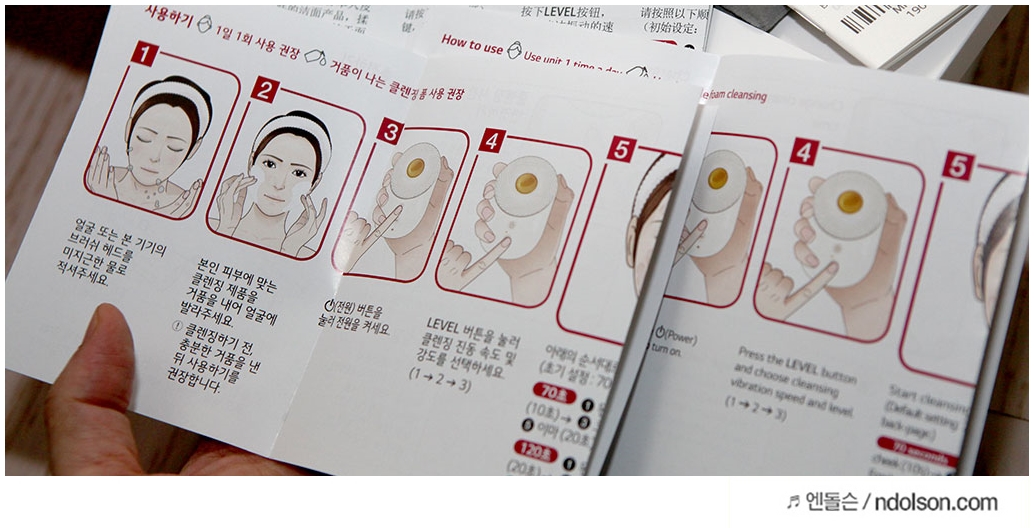 진동클렌저가 다 그렇지만, LG 프라엘 초음파클렌저 사용법은 간단합니다. 가볍게 미지근한 물로 얼굴을 적시고 자신의 피부에 맞는 클렌징 제품을 얼굴에 발라 줍니다. 그 다음 엘지 프라엘 진동클렌저를 켜서 LEVEL을 조정하여 사용합니다.