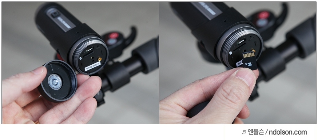 후면을 돌려서 열면, microSD 메모리카드가 들어갑니다.