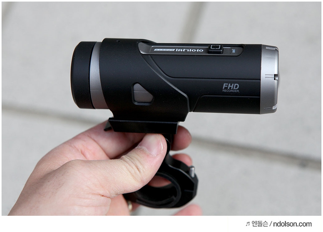 또 아이나비 자전거 블랙박스를 장착 후, 손쉽게 분리할 수 있다는 점도 장점입니다. 거치대를 통째로 다시 분리하는 방식이 아닙니다. 액션캠을 스위치로 끼우고 빼는 방식이라 좋습니다.