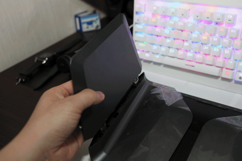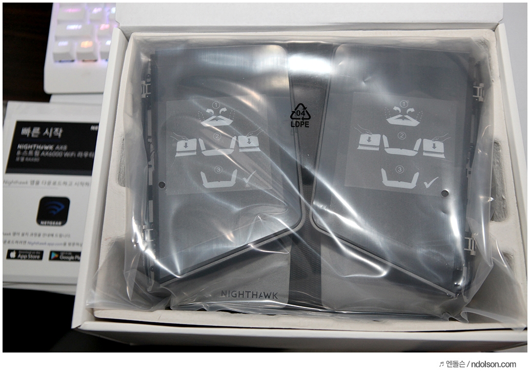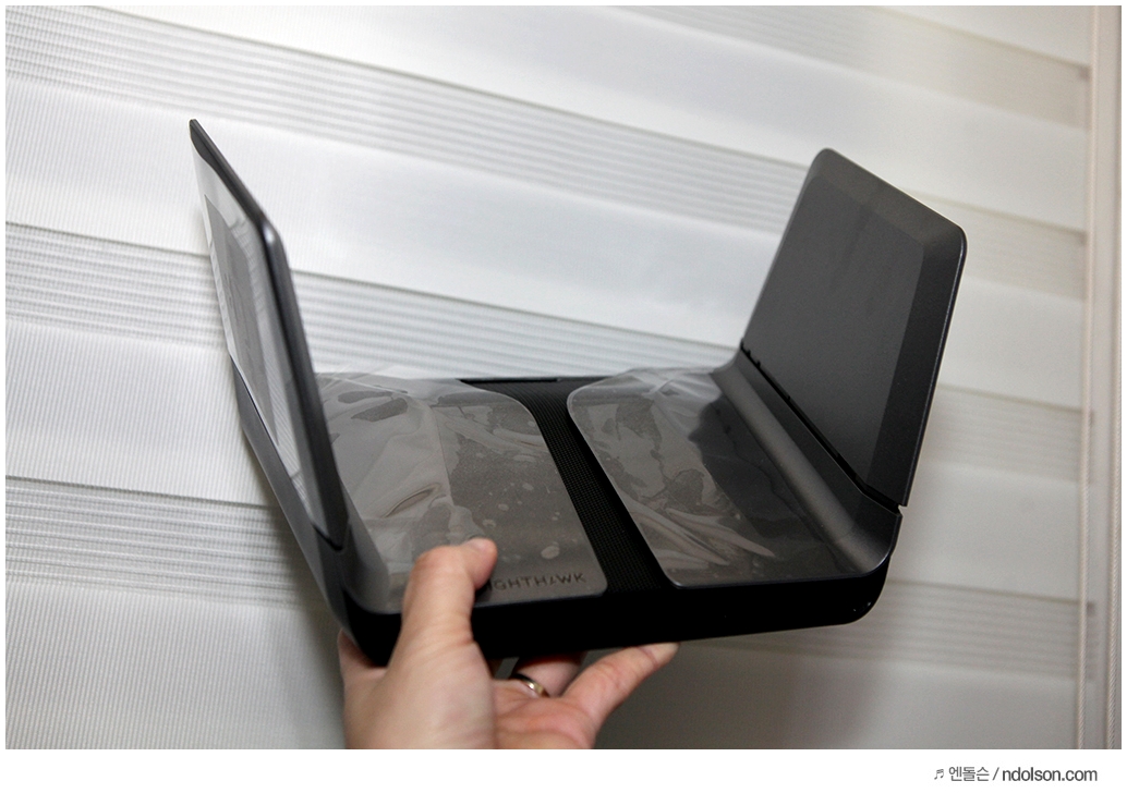 안에 넷기어 RAX80 유무선공유기가 보입니다. 그런데 놀랍게도 접혀 있다?