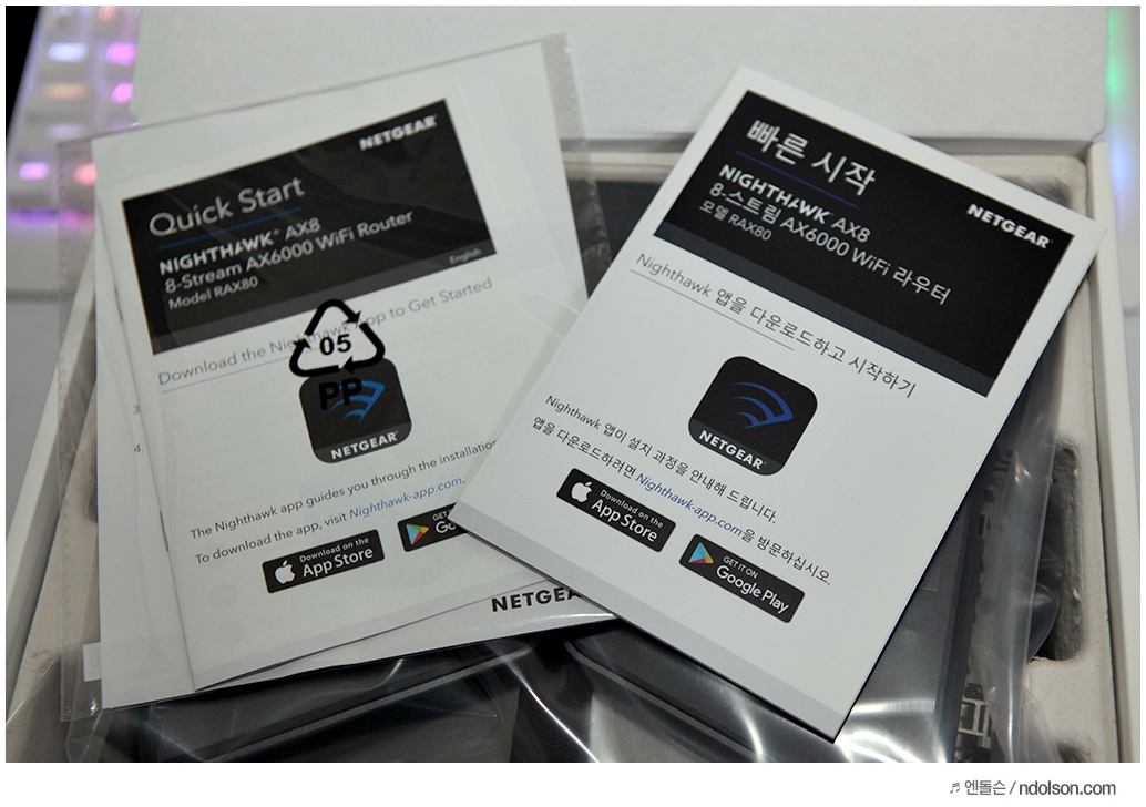 넷기어 유무선공유기 설치는 간단합니다. 퀵 가이드를 보면, 앱 설치로 손쉽게 할 수 있는 방법이 나옵니다.