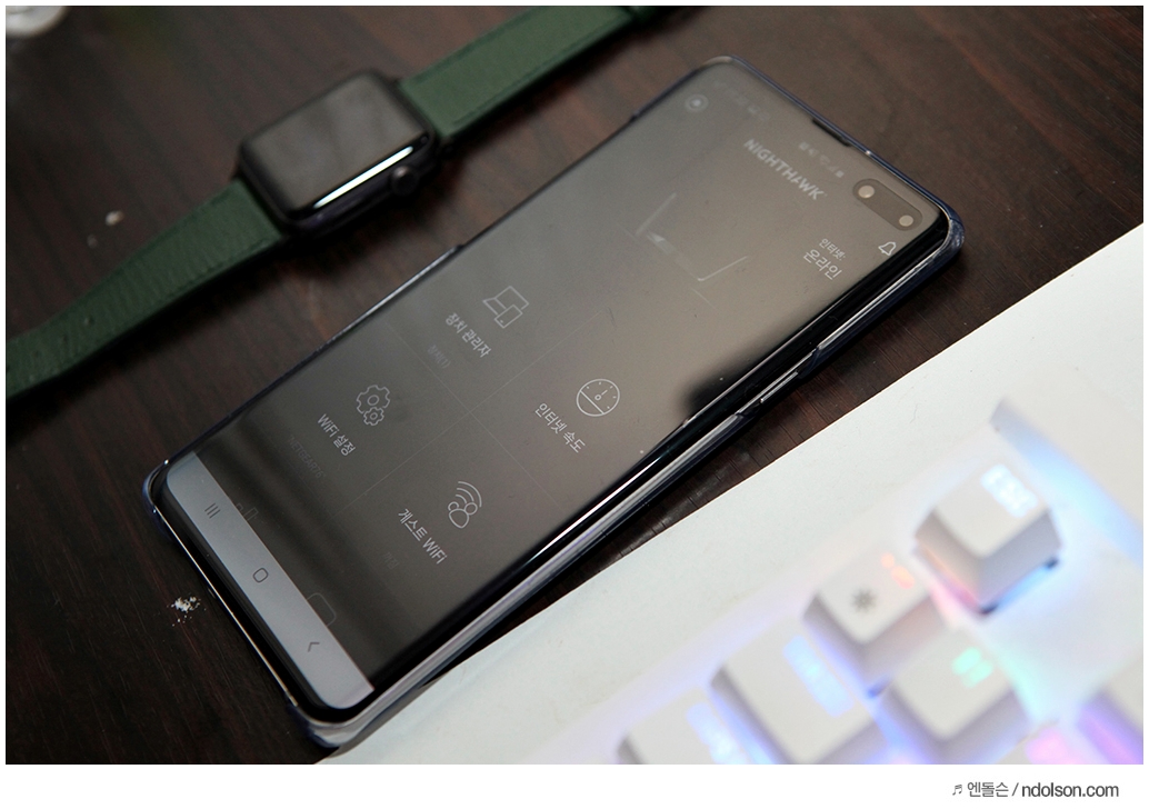 NETGEAR79-5G 와이파이를 잡았습니다. 갤럭시 S10 5G 스마트폰을 사용하고 있는데, WIFI6 (와이파이 6)으로 표시됩니다. 와이파이6을 지원하는 스마트폰은 갤럭시 S10 시리즈가 있는 데, 와이파이 연결 시 빠른 무선인터넷이 가능한 와이파이6으로 표시되게 됩니다.