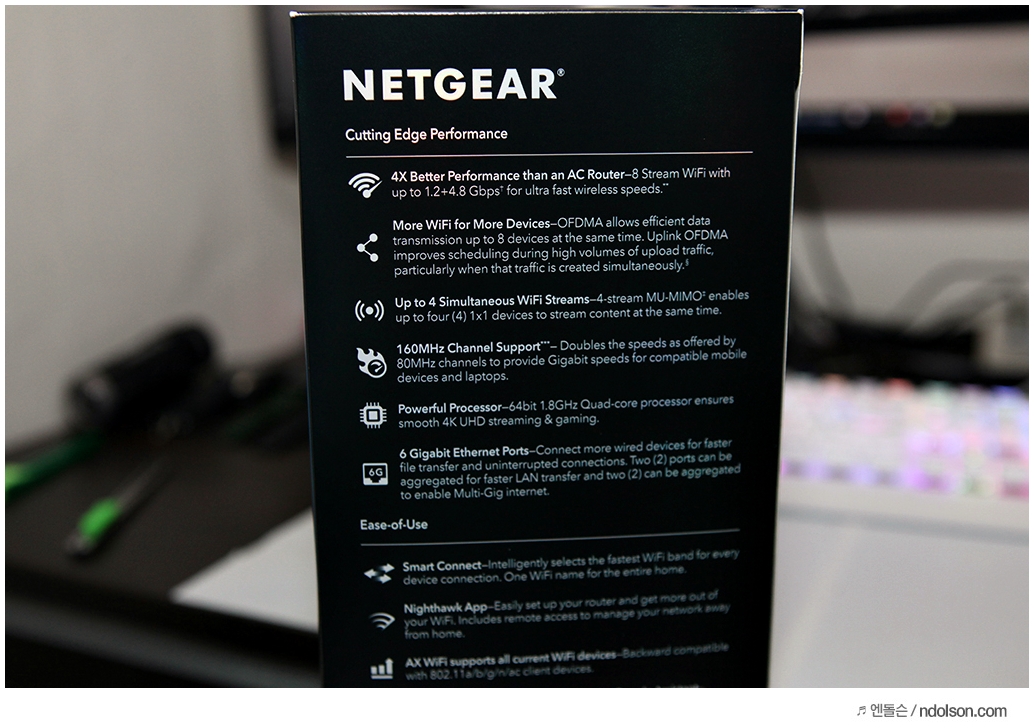 와이파이6와이파이6(802.11ax)를 완벽하게 지원하는 날개 달린(?) 공유기로 유명한 넷기어 RAX80에 대한 리뷰를 시작합니다.