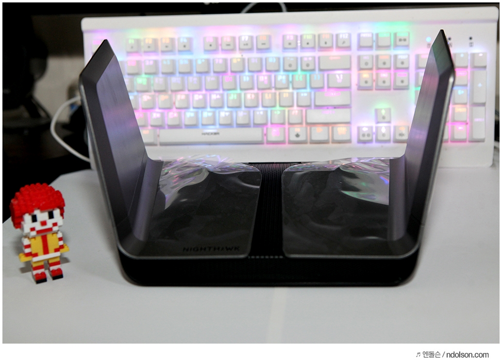 안에 넷기어 RAX80 유무선공유기가 보입니다. 그런데 놀랍게도 접혀 있다?