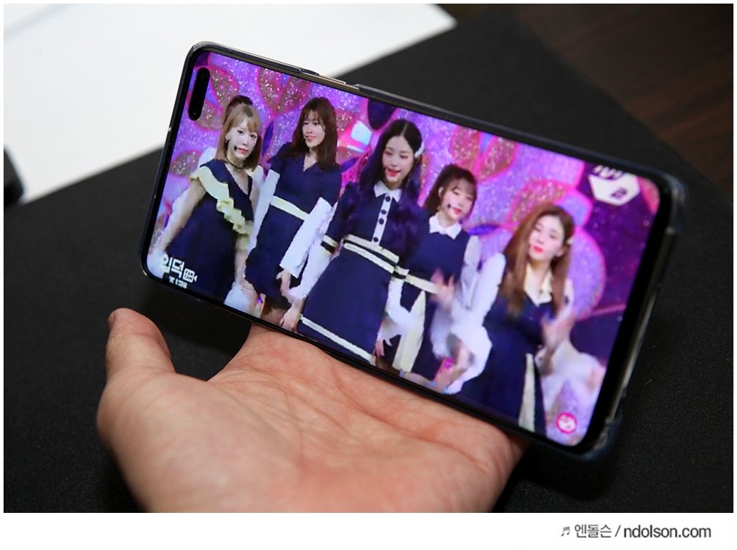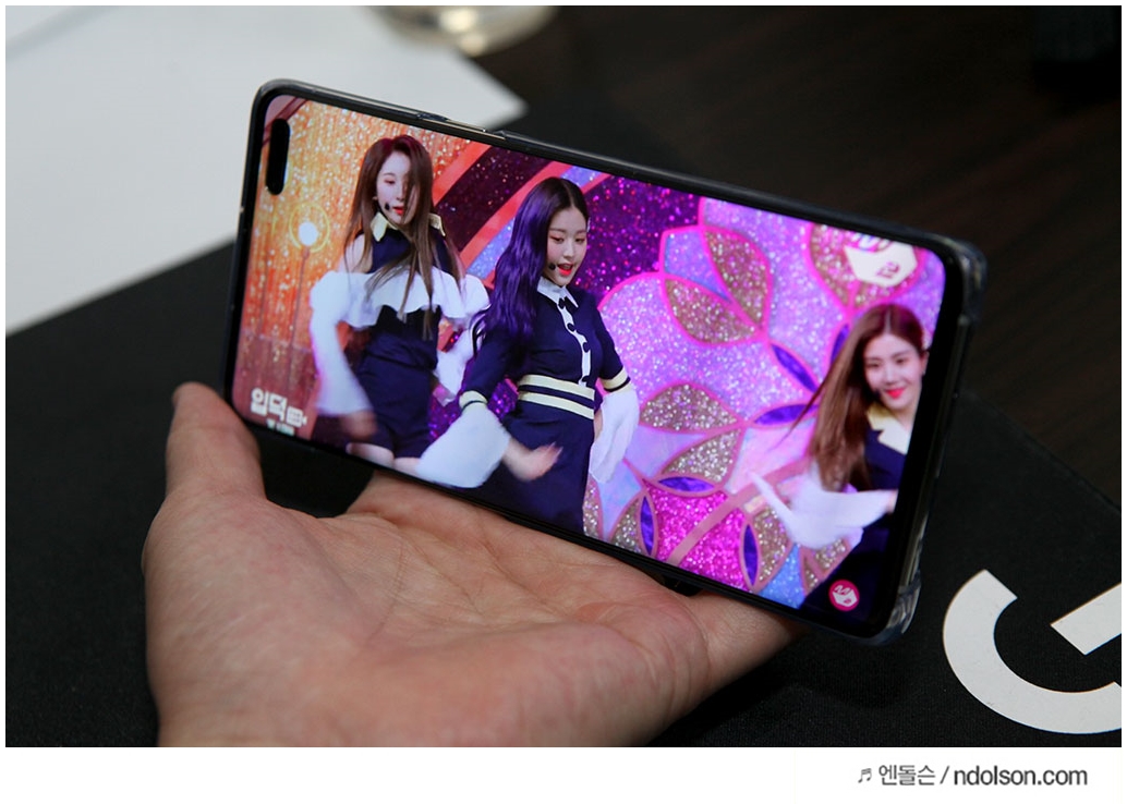 필자가 좋아하는 아이즈원 동영상을 재생해보면서, 갤럭시S10 5G의 보호필름이 잘 부착되었는 지도 확인하였습니다. 영상 재생에도 깔끔합니다.