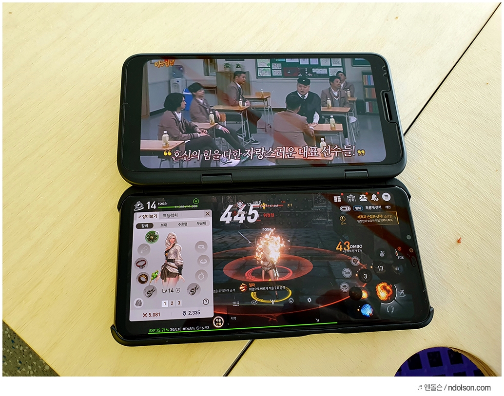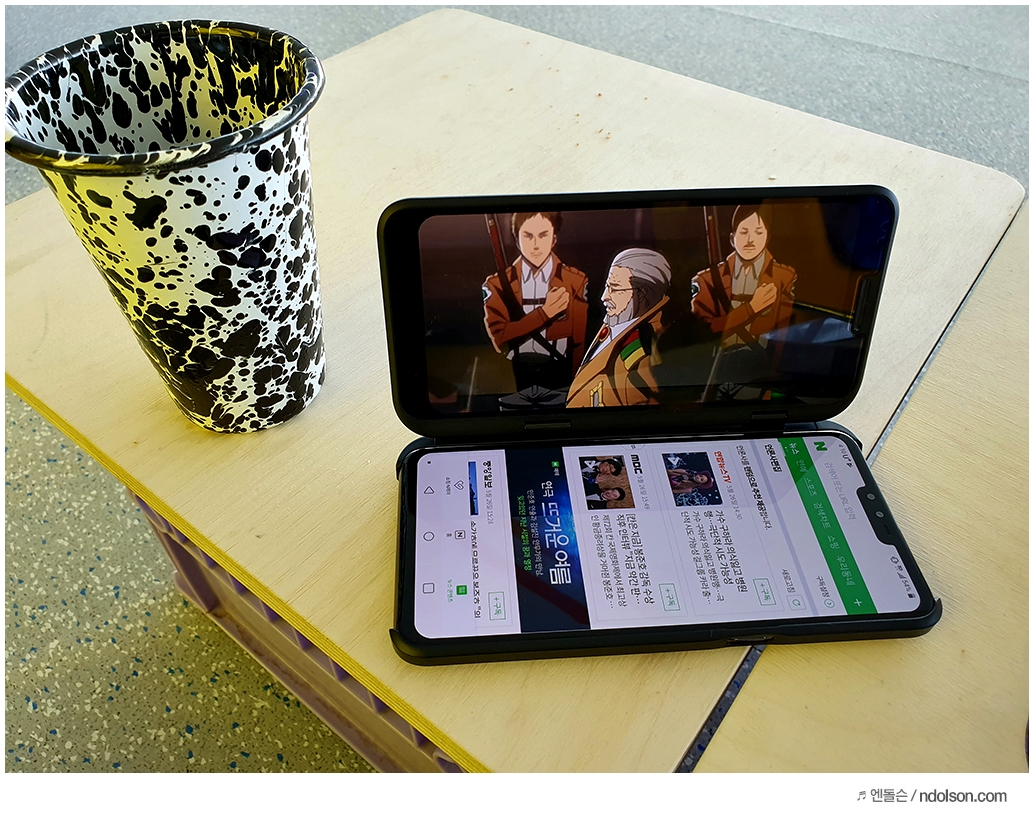 이렇게 쓰라고 LG V50 ThinQ를 만들었다는 생각이 듭니다. 2개의 화면을 보면서 멀티로 즐기는 것이죠.