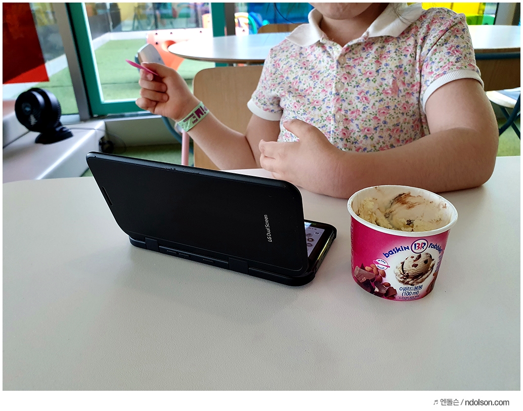 PIM키즈카페에서 쉬면서 진격의 거인 애니메이션을 넷플릭스로 보고 있습니다. 그러면서 잠깐 검색을 할 수 도 있는 데, 이건 LG V50 씽큐이니깐! 가능하네요!