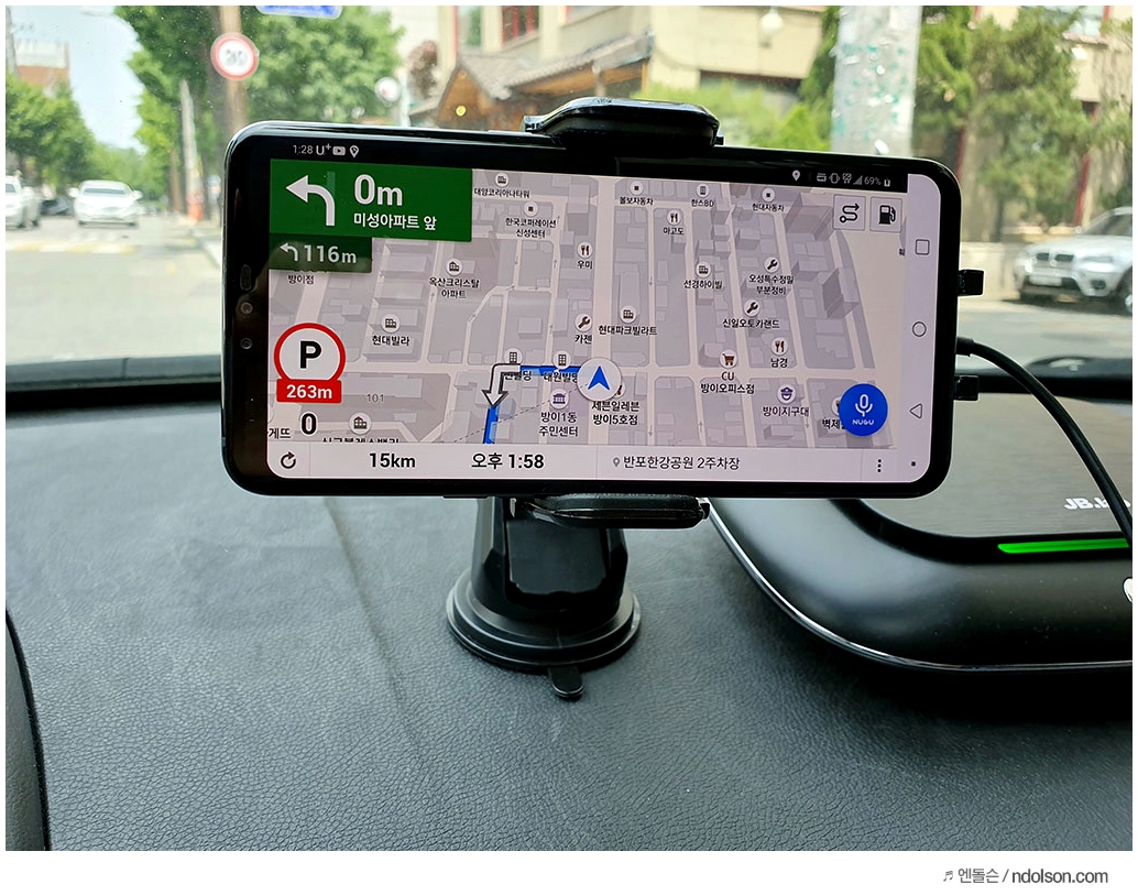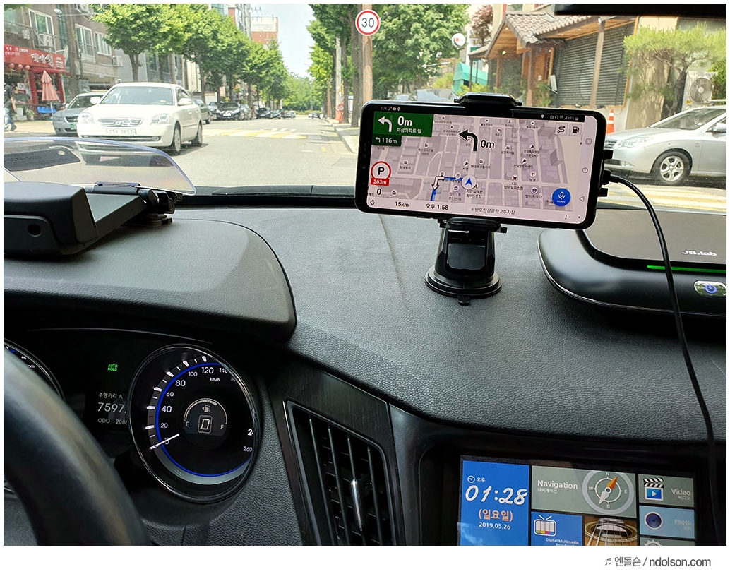 또 LG V50 ThinQ의 GPS 수신도 강해서 차 안에서 네비게이션 사용하는 데 불편함이 없었습니다. 왜 이런 이야기를 하냐 하면, NASA에서 개발된 특수 열차단 코팅을 하고 났더니, 차안에서 GPS 수신율이 떨어지더라고요. 그런데도 V50은 잘된다는 말입니다. 참고하세요.