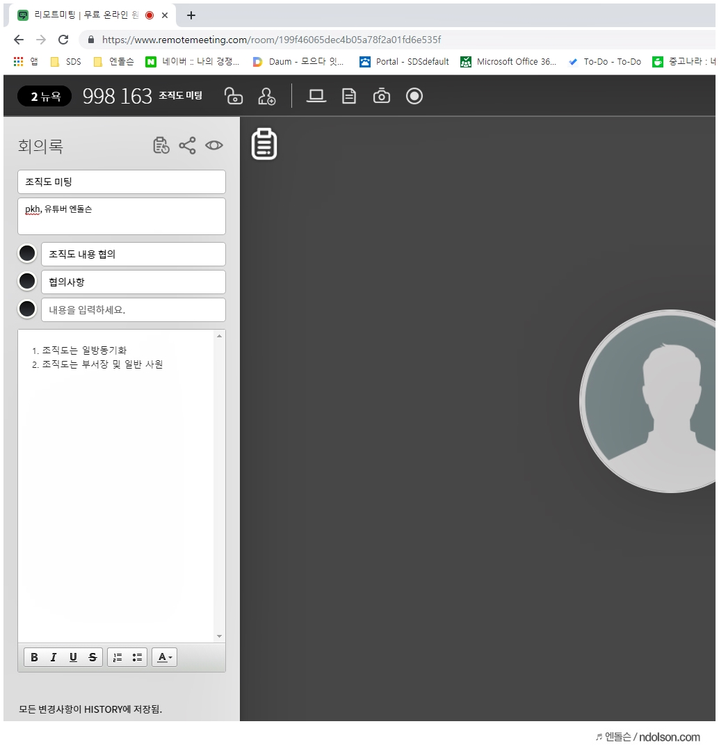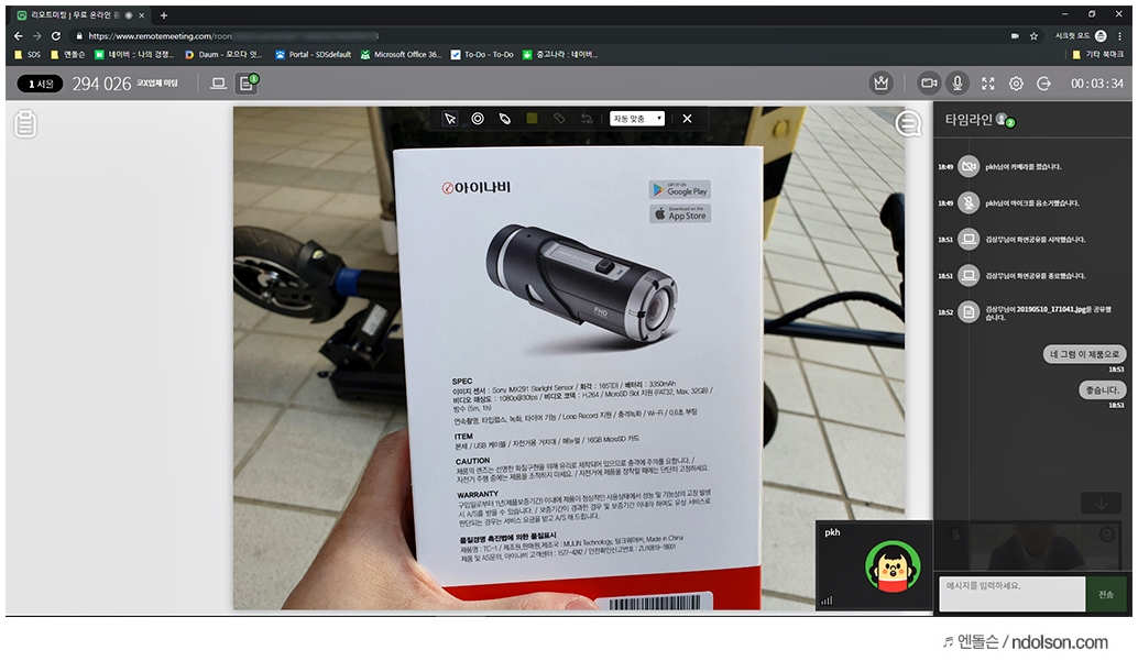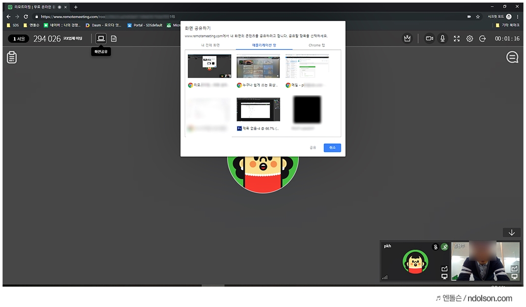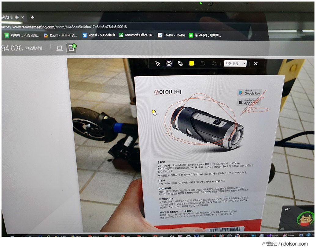 특히 화면 공유를 통해서 작성된 PPT, Word 문서를 보면서 이야기할 수 있습니다. 외부에 미팅이 많은 개발 PM 차장이 작성한 문서의 내용을 아무리 봐도 이해가 되지 않았습니다. 하지만, 회의실에서 내부 직원이 모두 모여 있는 상태에서 화상 미팅을 통해서 업체와 미팅한 내용의 문서를 화면 공유하면서 설명을 해주니 쉽게 이해가 되었습니다.
