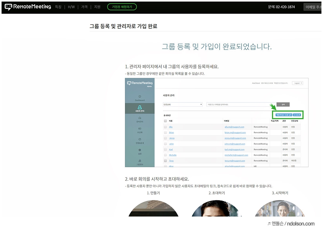 회원가입을 하면, 리모트미팅의 관리계정을 만들 수 있습니다.