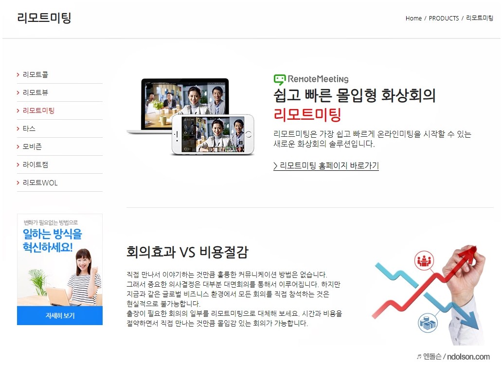 온라인 화상회의 프로그램인 알서포트 리모트미팅의 홈페이지는 위의 URL을 클릭해주세요. 직접 체험판을 설치해서 화상회의를 체험해볼 수 있습니다.