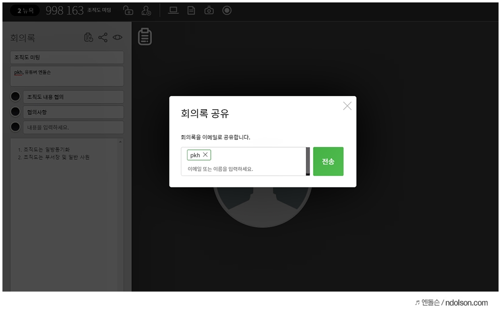 또 화상회의에 참여하지 못한 사용자를 위해서 녹화된 영상을 공유할 수도 있습니다. 또 회의록 작성 기능이 있어 작성된 회의록을 업체 미팅 자료로 활용할 수 있습니다.