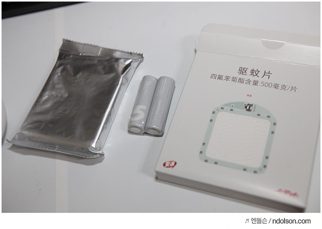 샤오미 모기퇴치기는 필터가 있어야 합니다. 건전지 AA 2개를 넣어 사용할 수 있습니다. 건전지는 바로 사용할 수 있게 넣어 주네요. 필터는 90일 사용할 수 있습니다.