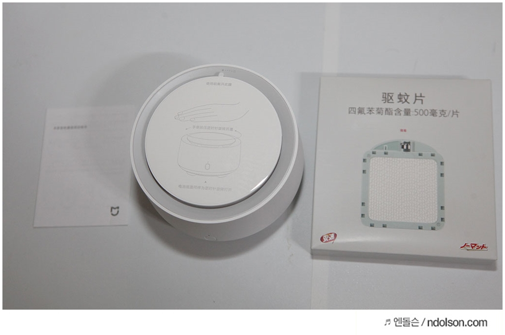 가정용 모기퇴치기를 열어보니, 깔끔한 외형으로 되어 있습니다. 중국어라 모르겠지만, 그림으로 쉽게 사용법을 이해할 수 있었습니다.