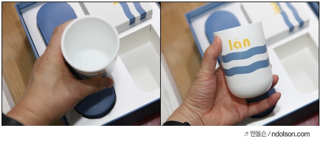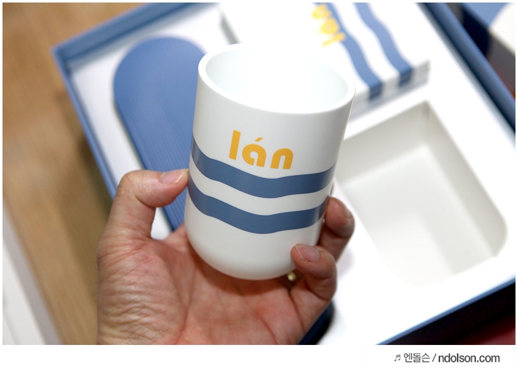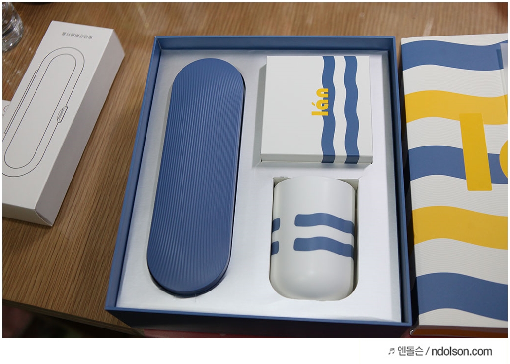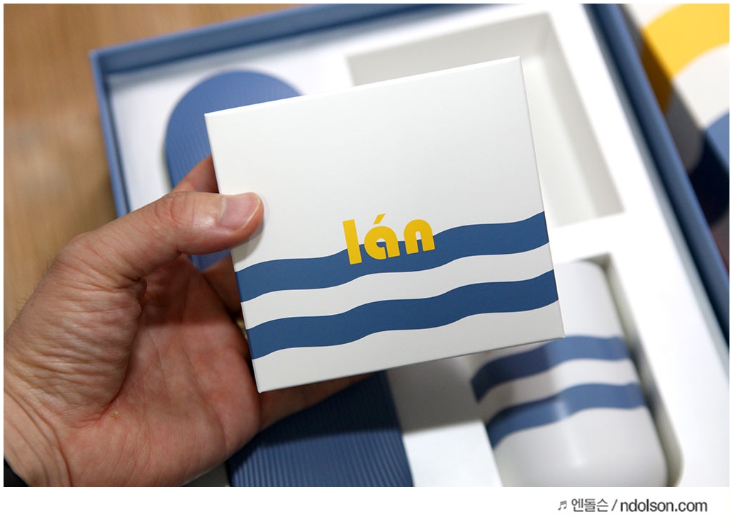 노란색에 블루 줄무늬가 깔끔합니다. 나름 고급스럽게 포장에 신경을 쓴 게 좋습니다.