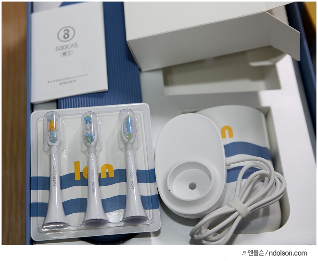 샤오미 수케어 전동칫솔 X5의 구성품입니다. 사실 추가 구성품으로 닥터베이용칫솔모와 수카스용 칫솔모, 칫솔케이스를 구매하였습니다. 샤오미 수케어 칫솔모는 추가로 사려니 2개짜리는 재고가 없어서 1개라도 아쉽지만 구매하였습니다.