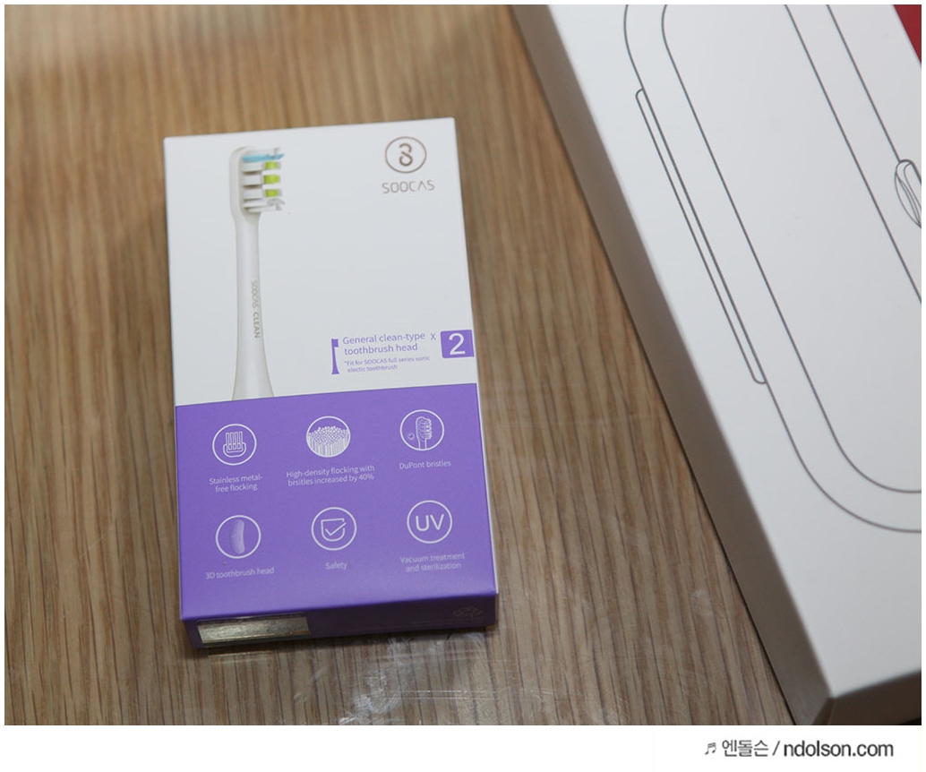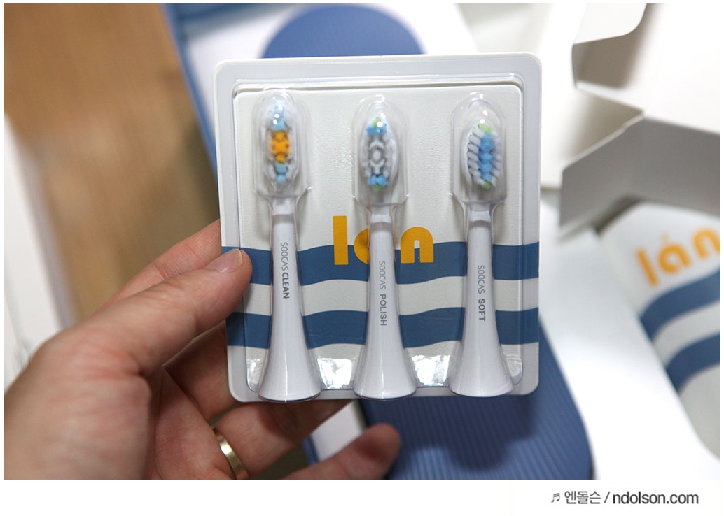 샤오미 전동칫솔모입니다. 3가지 종류의 soocas clean, soocas polish, soocas soft 가 있습니다. 치석제거와 미백효과, 일반적인 양치질이 가능한 칫솔모로 보이며, 다양한 칫솔모가 있어서 선택의 폭이 넓습니다.