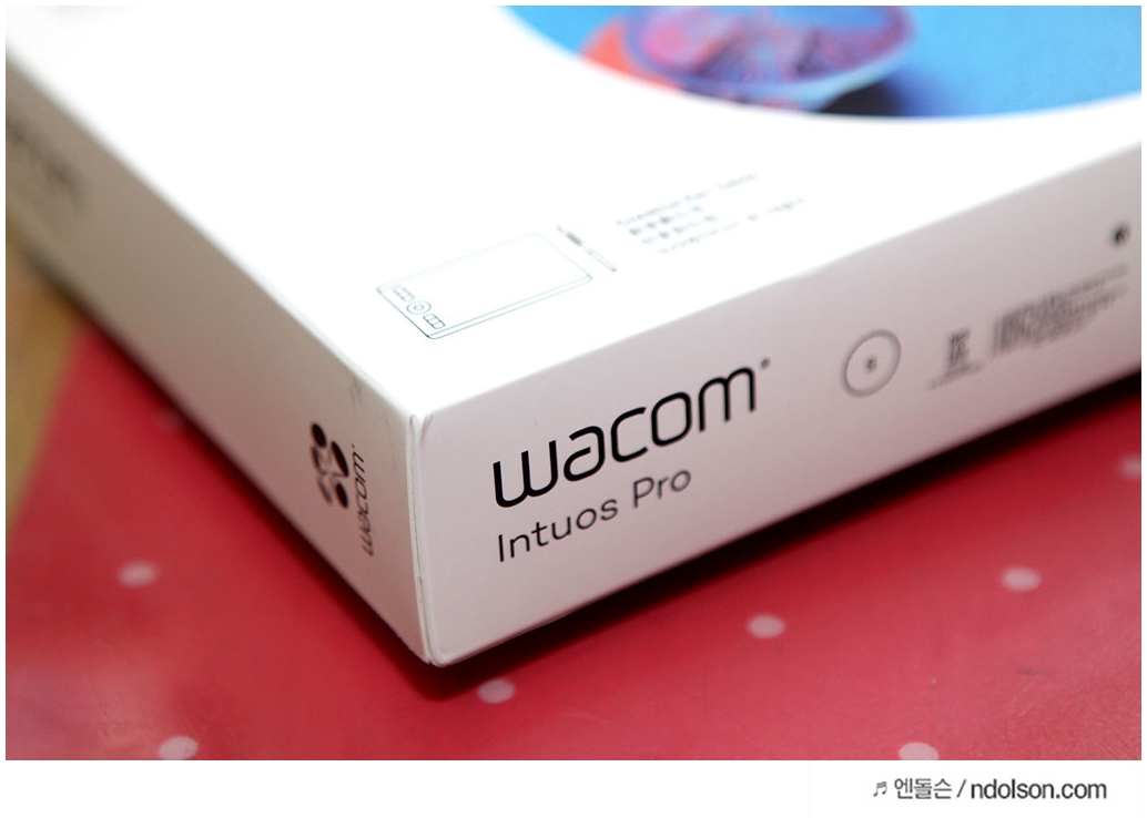 와콤 패키지 박스 사진입니다. Wacom Intuos Pro 제품 모델명이 쓰여 있습니다.