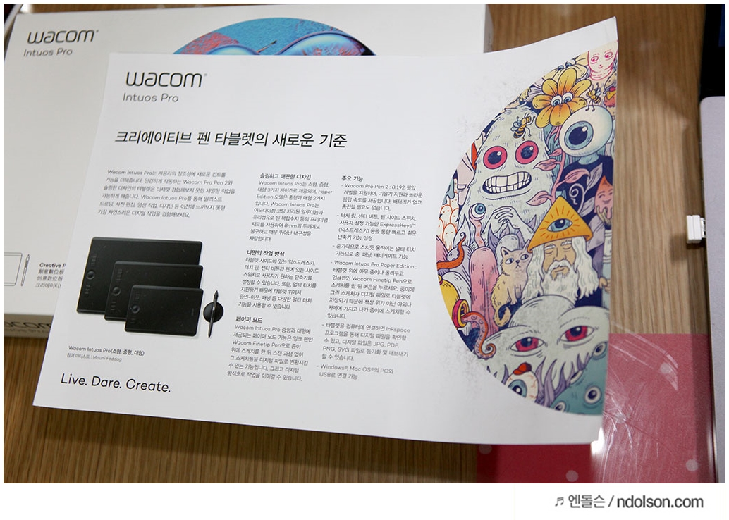 WACOM 와콤하면 떠 오르는 타블렛은 패키징 느낌부터 창의적인 작업을 하기에 좋은 기분을 느끼게 해 줍니다. 같이 주는 설명 브러셔가 느낌이 좋죠?