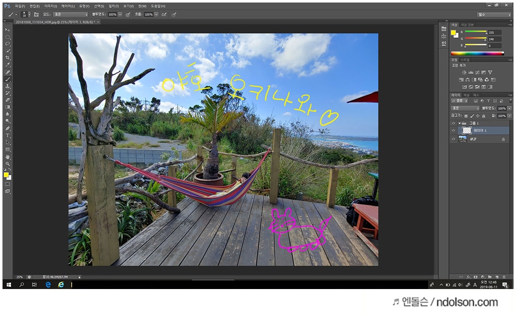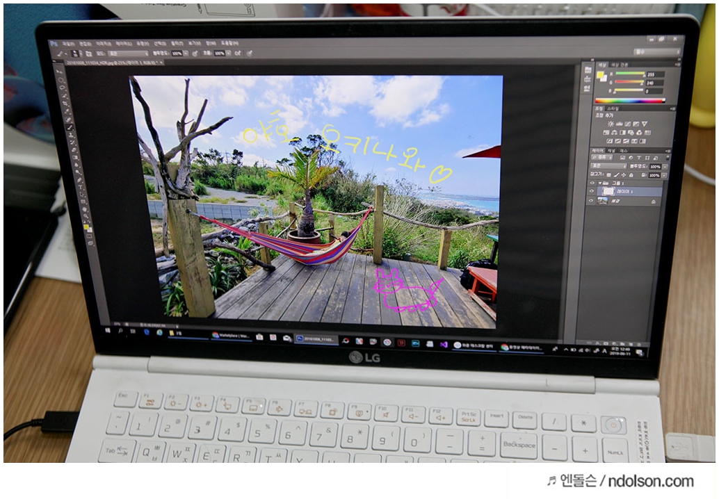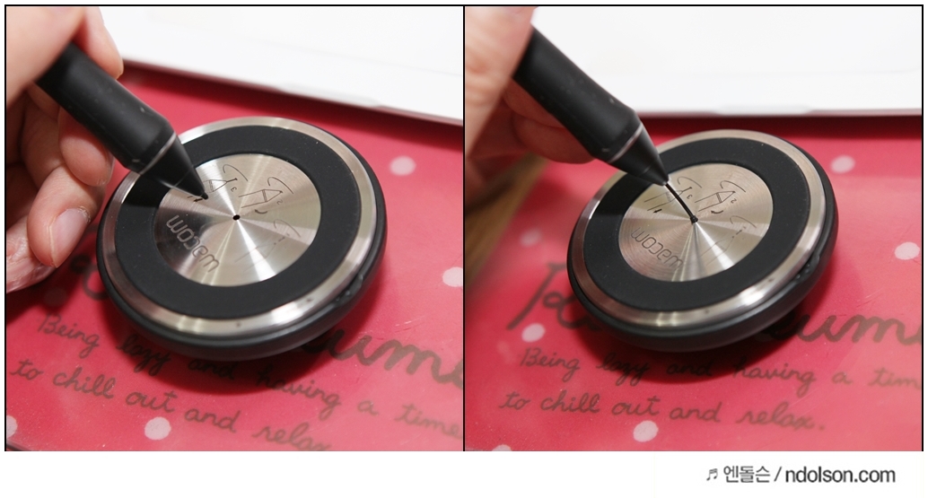 평소 DSLR로 촬영한 사진에 손글씨를 쓰거나 디자인 작업은 아니고 색칠하는 작업까지만 해보았습니다. 전업 디자이너라면 분명 정교하게 움직이게 변화된 8,192단계의 압력 감지 레벨에 만족하실 겁니다. 또 펜 옆면에 사용자 지정이 가능한 스위치를 통해 바로 가기 설정으로 빠르게 작업의 속도를 높여 줄 수 있습니다.