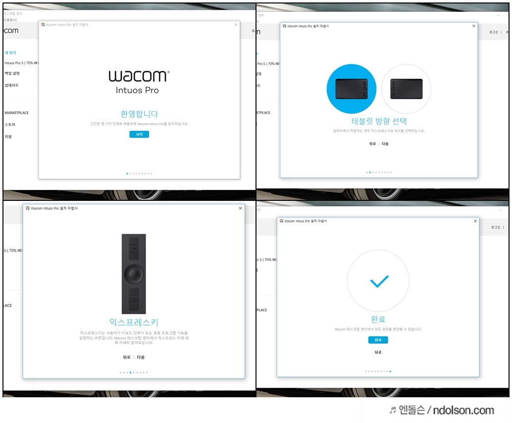 태블릿 방향은 어느 쪽인지 선택하여 줍니다. 다음을 누르고 계속 진행 후 설치를 완료하면 됩니다.