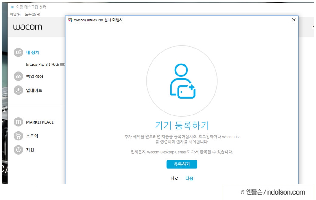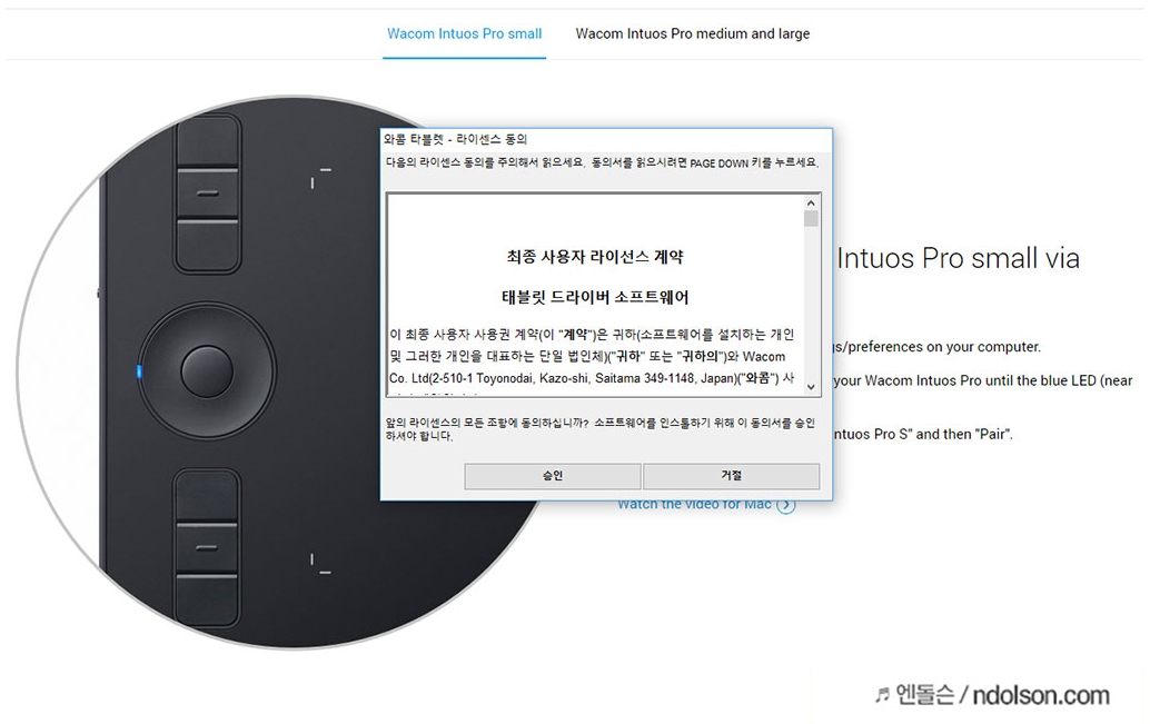 이제 와콤 신제품 인튜어스 타블렛인튜어스 프로 소형을 사용하기 위한 준비과정을 모두 마쳤습니다.