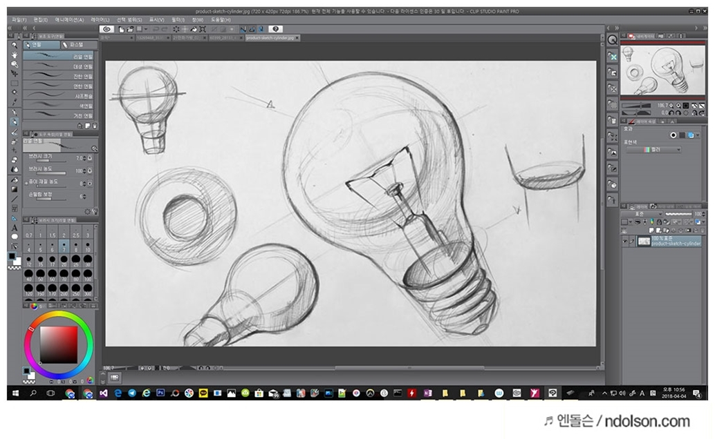 Clip Studio Paint Pro을 이용하면, 리얼 연필, 데생 연필, 진한 연필, 연한 연필, 샤프 연필, 색연필 등의 필기구를 지정하여 작업을 할 수 있습니다.