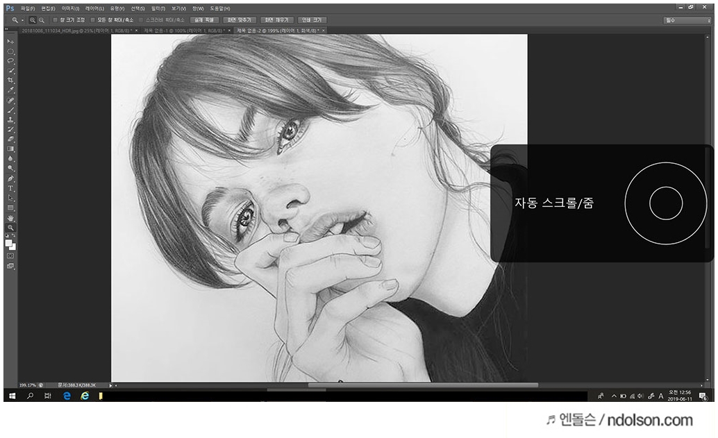 익스프레스 키를 누르면 손 터치로 조작이 가능합니다. 자동 스크롤 및 줌이 가능해서 빠르게 작업을 할 수 있게 해 줍니다.