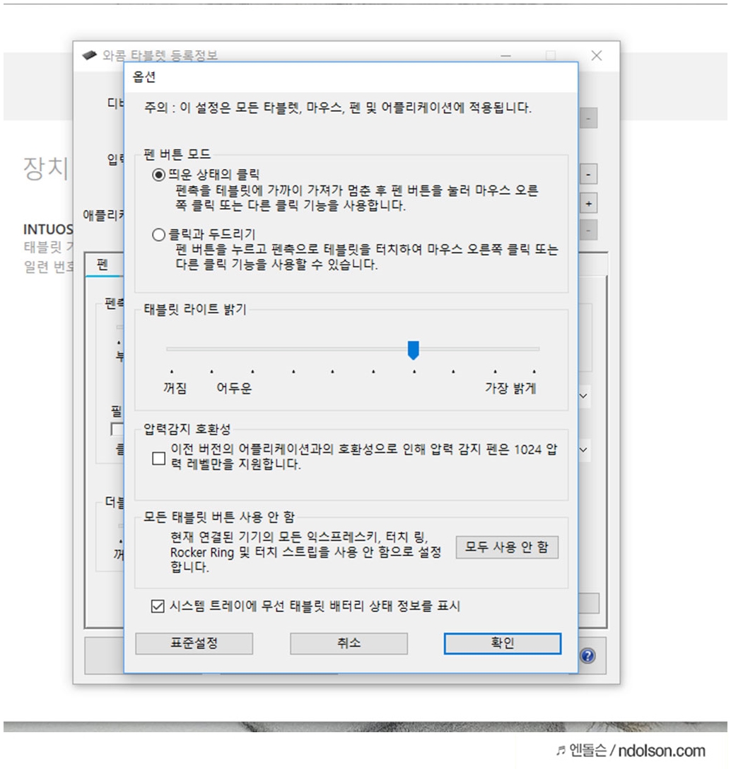 와콤 전용 프로그램 설치하여 줍니다.